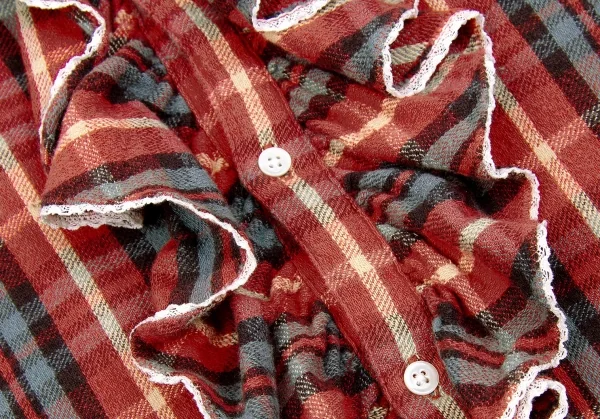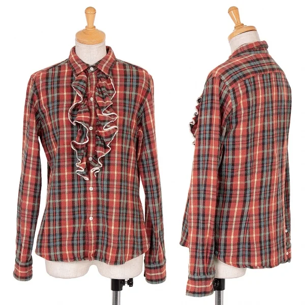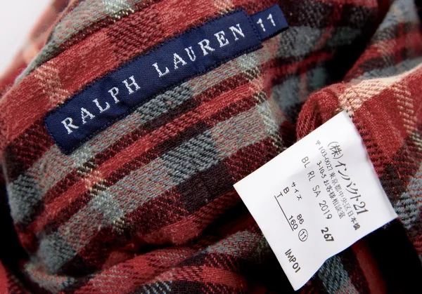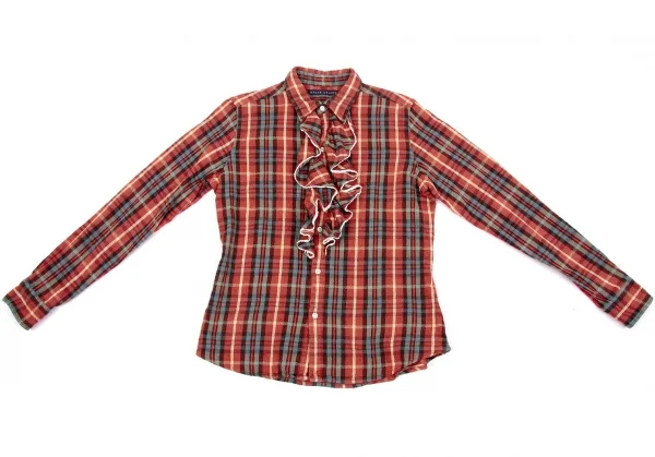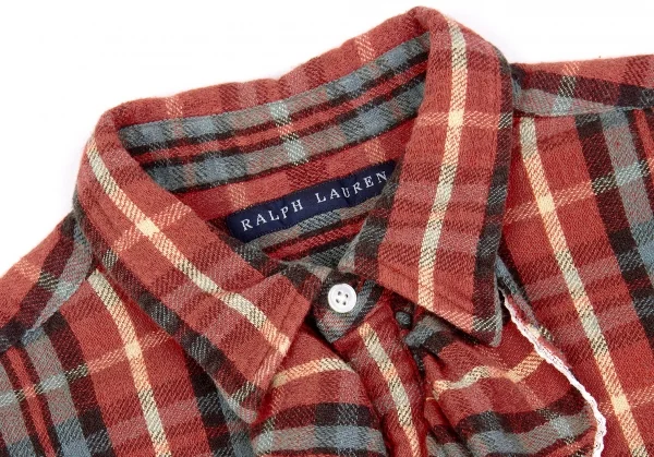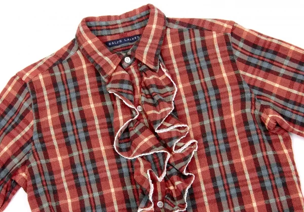 ラルフローレンRALPH LAUREN フリルチェックネルシャツ 濃オレンジクリーム他11
