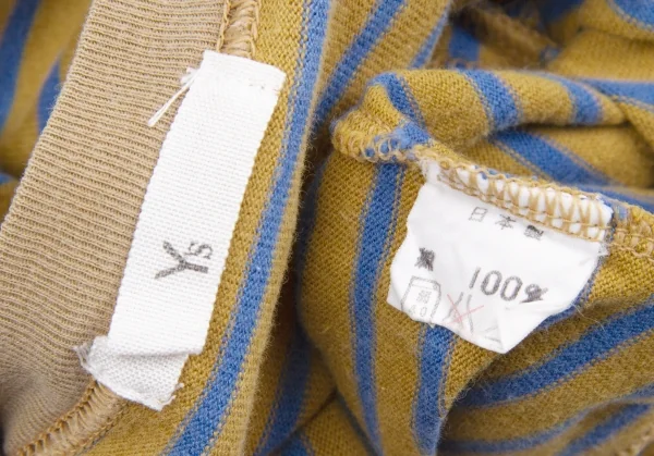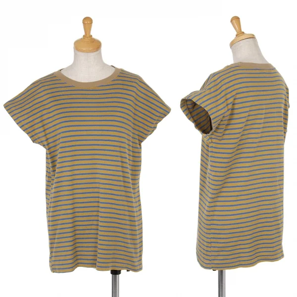 【SALE】ワイズY's フレンチスリーブボーダーカットソー カーキ青M位