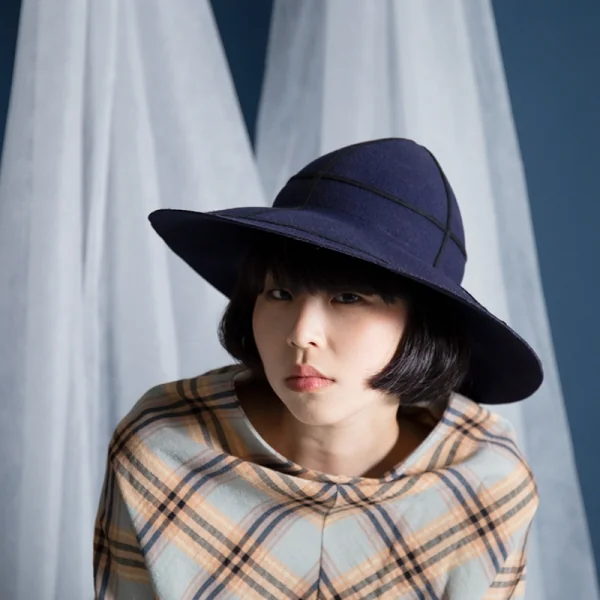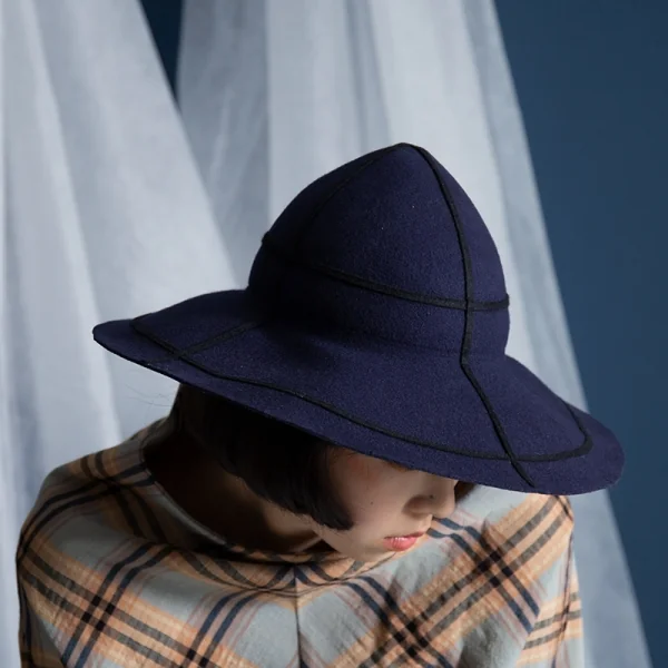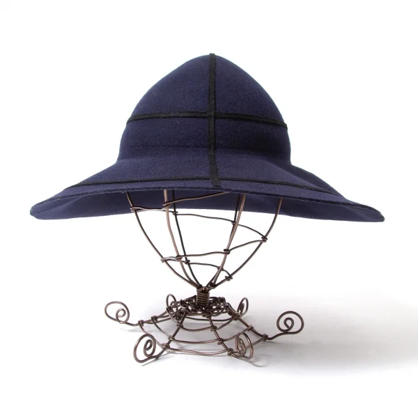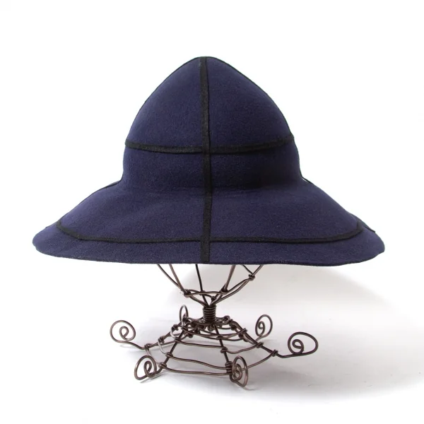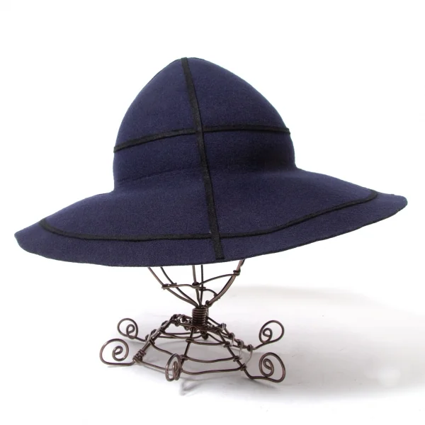 コムデギャルソンCOMME des GARCONS テーピングワイドブリムフェルトハット 紺黒
