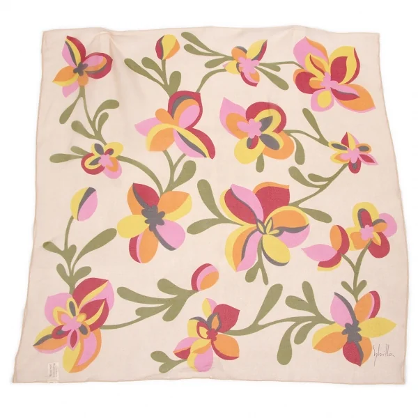 シビラSybilla フラワープリントシルクスカーフ ベージュ赤カーキ他