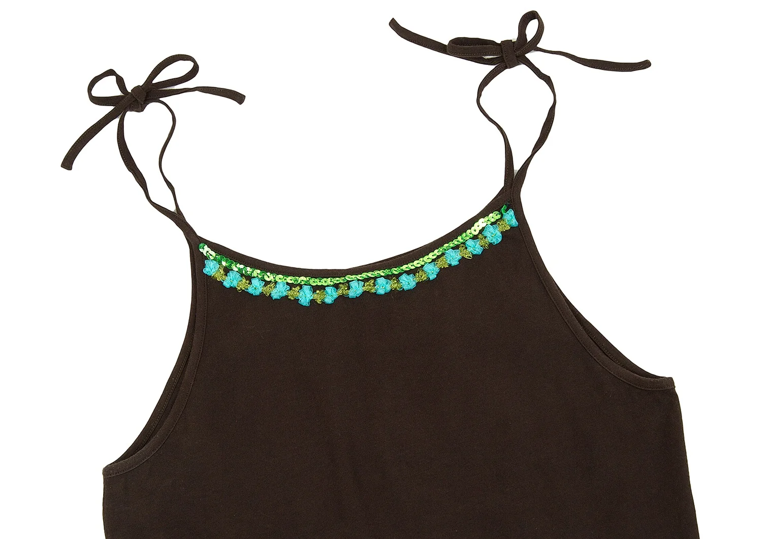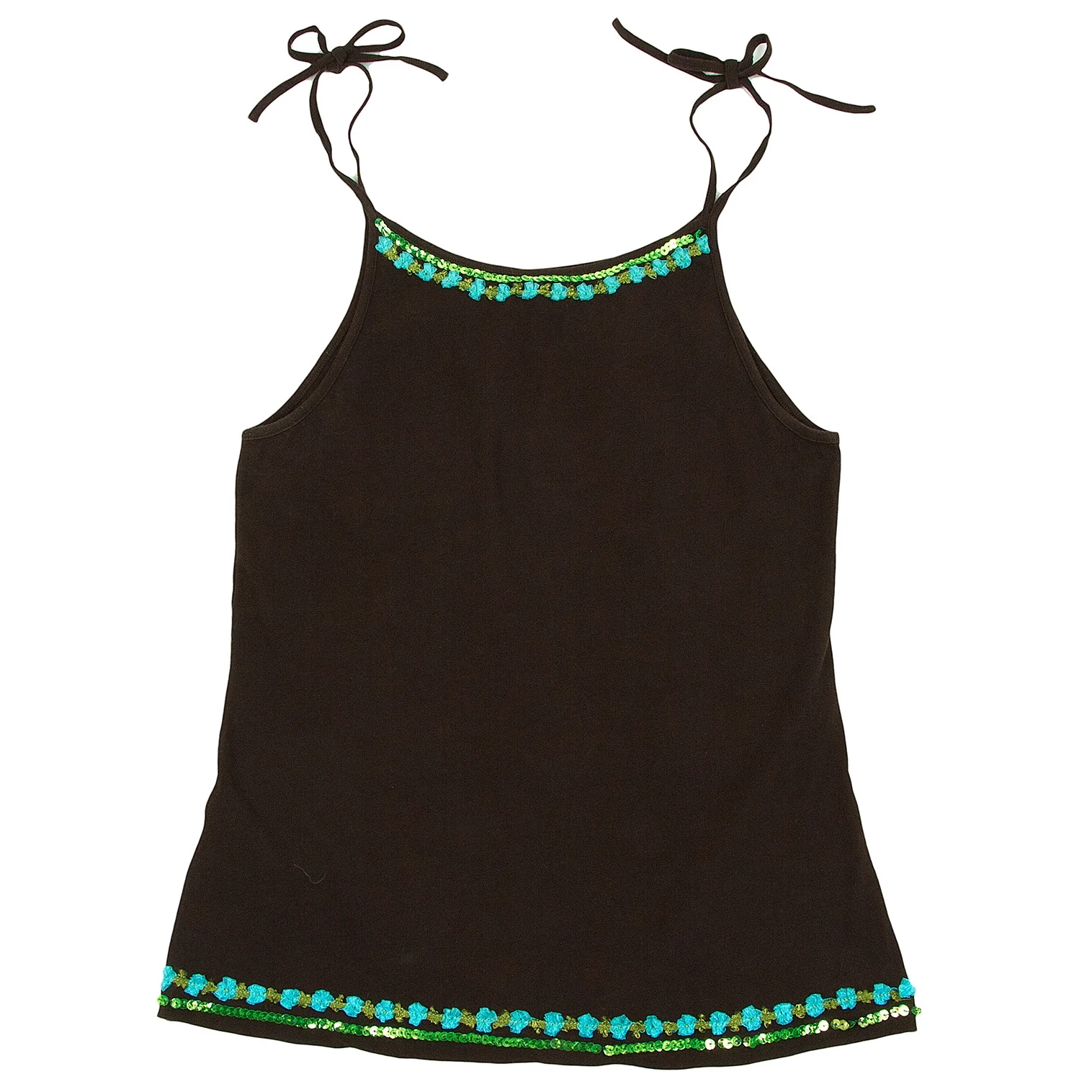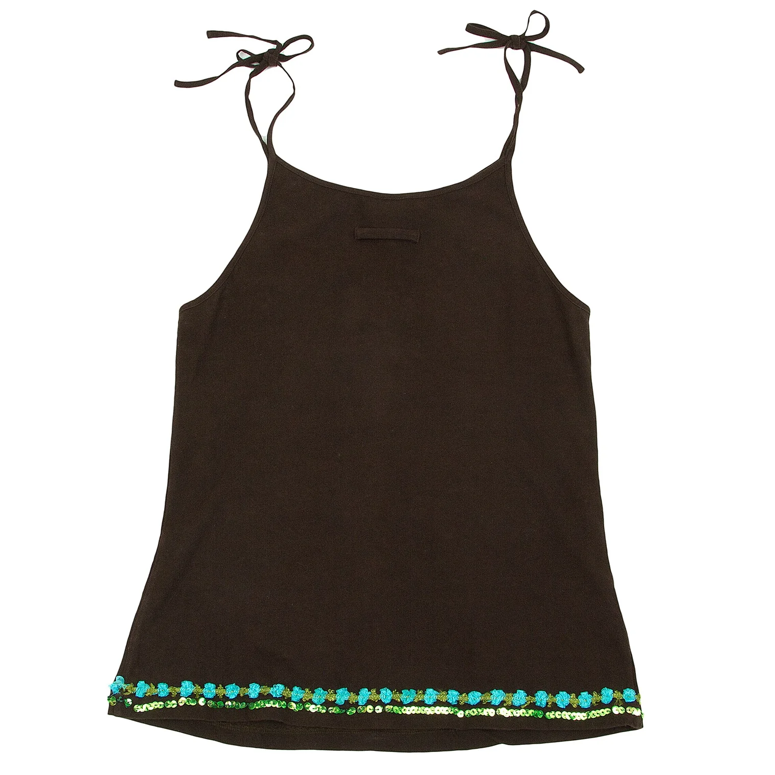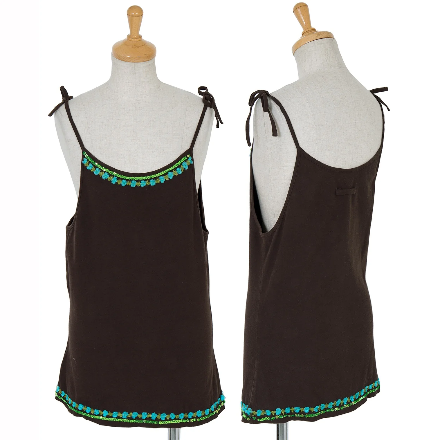 【SALE】ジャンポールゴルチエファムJean Paul GAULTIER FEMME スパンコールブレード装飾キャミソール こげ茶緑青40