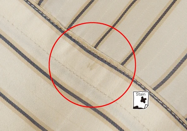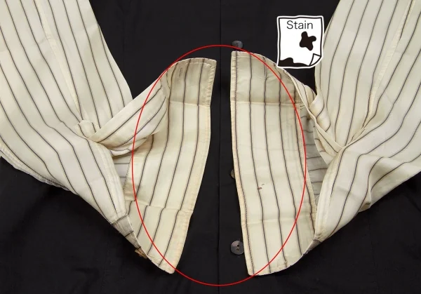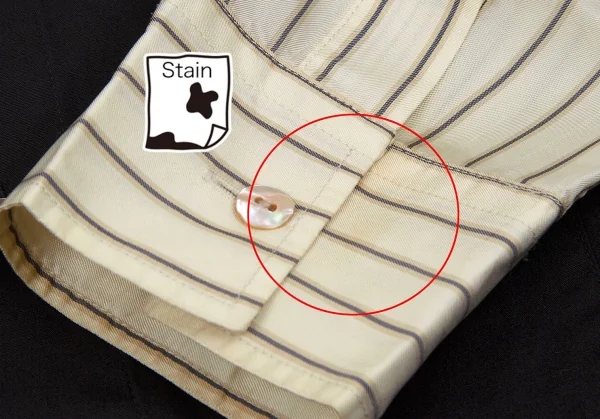 袖・袖先・袖裏にシミ、袖裏に汚れ、脇下にシミがあります(画像参照)。クリーニング済み