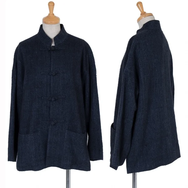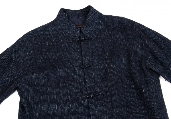 【SALE】ヨシエイナバyoshie inaba ウールシルク起毛ヘリンボーンチャイナジャケット 紺黒9