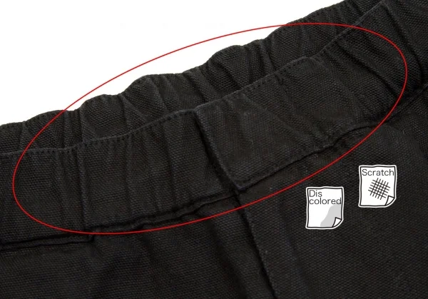 股下に糸ほつれ、ウエスト・ウエスト裏・前身頃・前両足に色あせがあります(画像参照)。クリーニング済み
