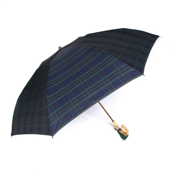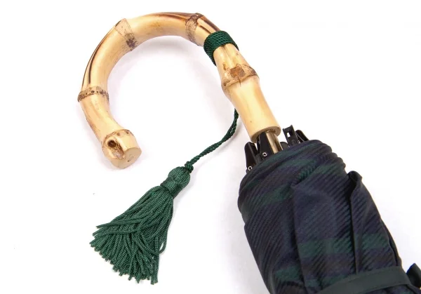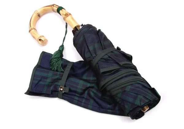 ケイタマルヤマKEITA MARUYAMA バンブーハンドルチェック柄折りたたみ傘 紺緑茶他