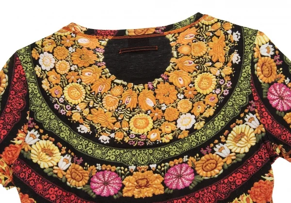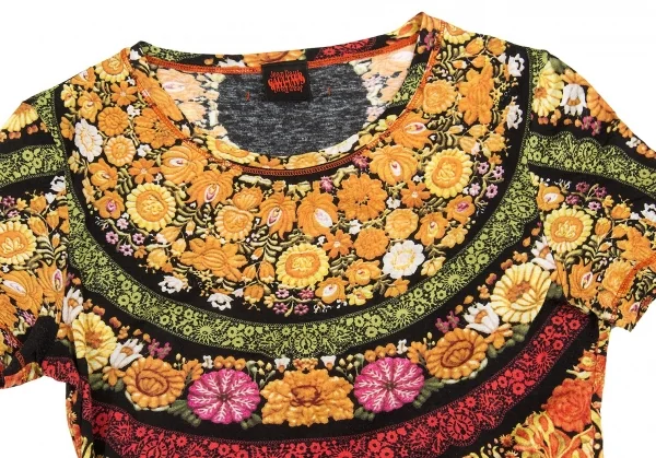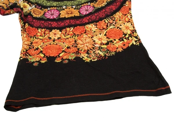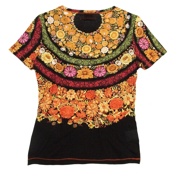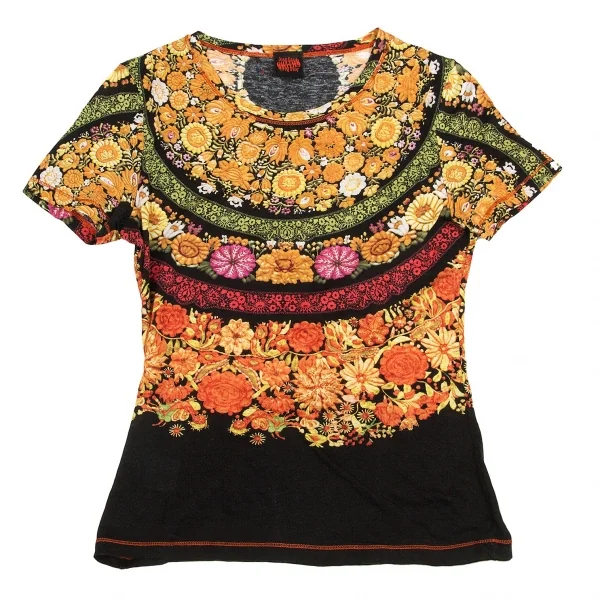 【SALE】ジャンポールゴルチエJean Paul GAULTIER フラワープリントTシャツ 黒黄オレンジ緑他40