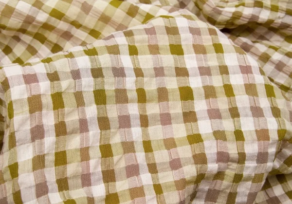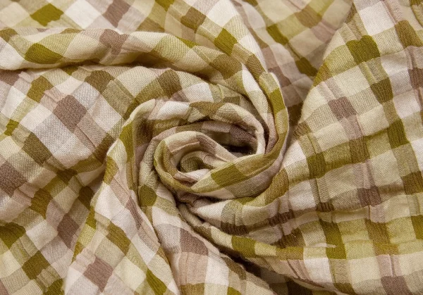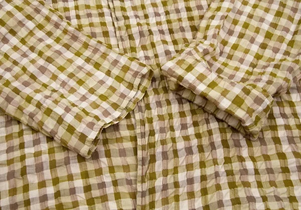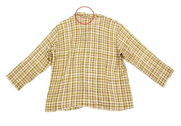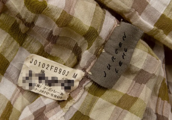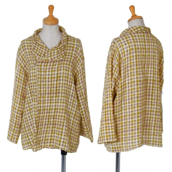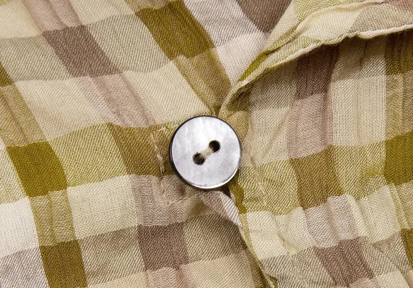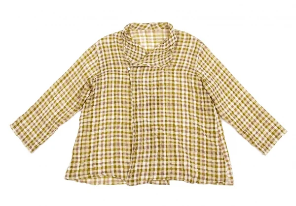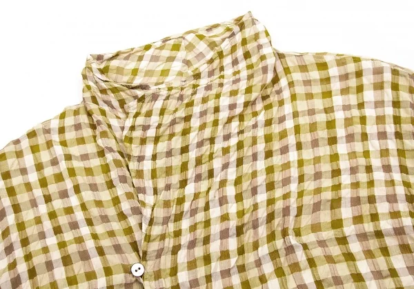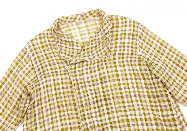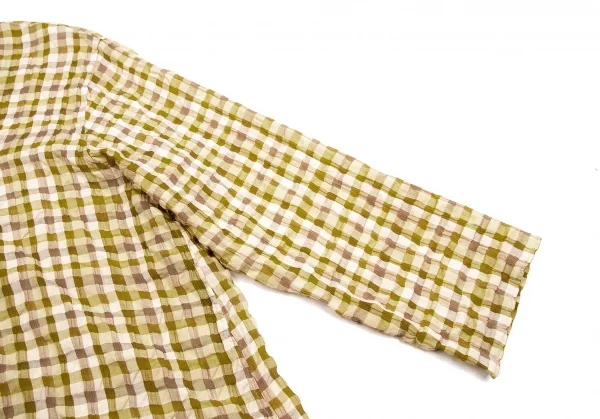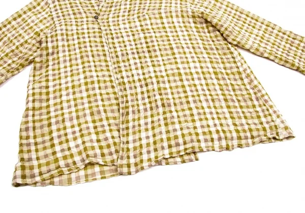 【SALE】ヨーガンレールJURGEN LEHL リップルブロックチェックブラウス 黄緑モカベージュ他M