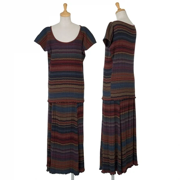 【SALE】ヨーガンレールJURGEN LEHL プリーツリブグラデーションセットアップ エンジ紫マルチM