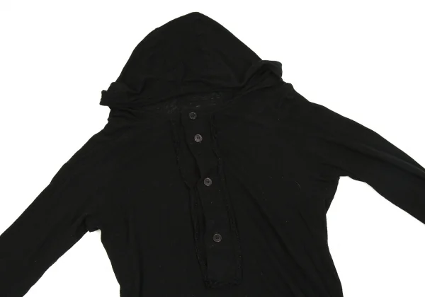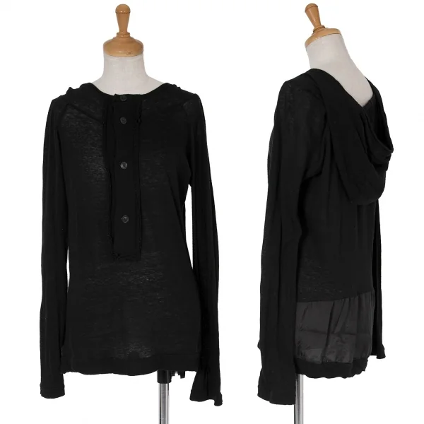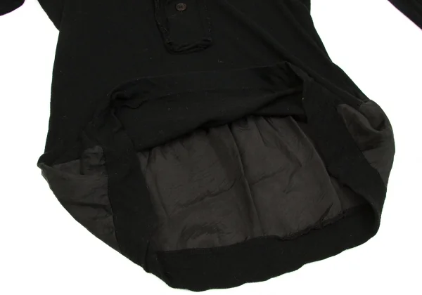 【SALE】ワイズY's フーデッドキュプラ切替ヘンリーネック長袖カットソー 黒3