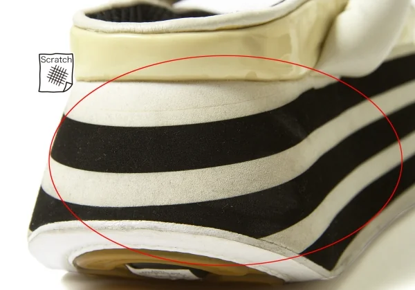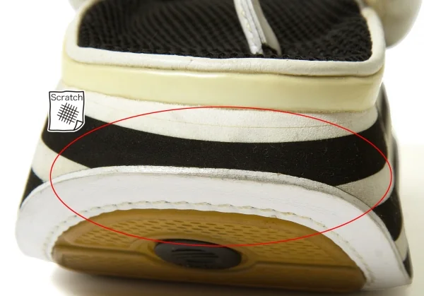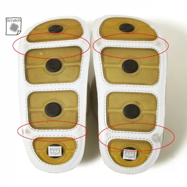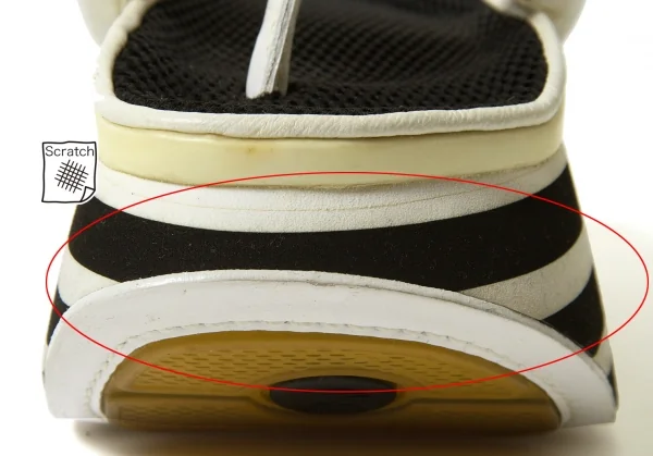 爪先、踵にスレ、汚れ、ミッドソールに薄汚れがあります(写真参照)。その他ソールの減りも少なく、目立った汚れ、ダメージ等なくいい状態です。