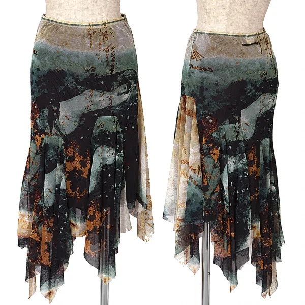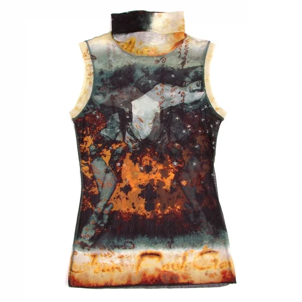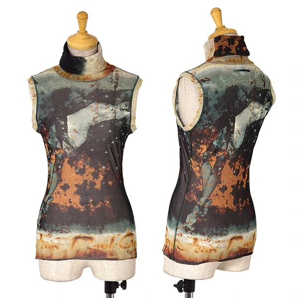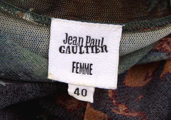 ジャンポールゴルチエ ファムJean Paul GAULTIER FEMME ヌードプリントパワーネットセットアップ 茶緑ベージュ40
