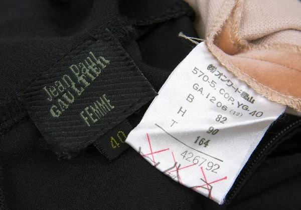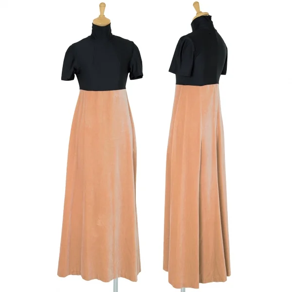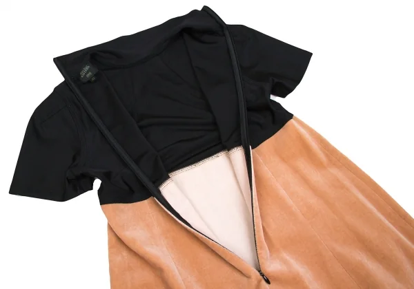 ジャンポールゴルチエ ファムJean Paul GAULTIER FEMME ベロア切替バイカラーワンピース ピンクベージュ黒40