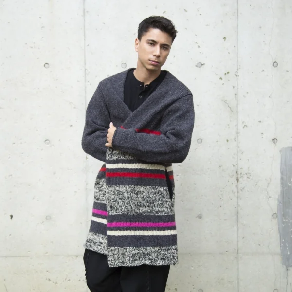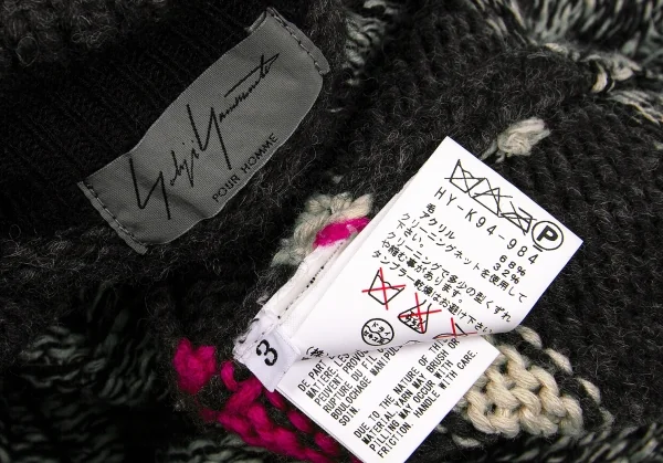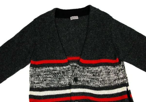 【SALE】ヨウジヤマモト プールオムYohji Yamamoto POUR HOMME 編み替えニットビッグシルエットカーディガン 杢グレー赤生成り他3