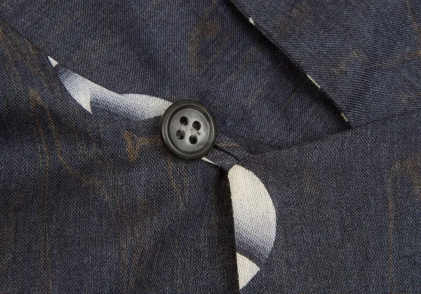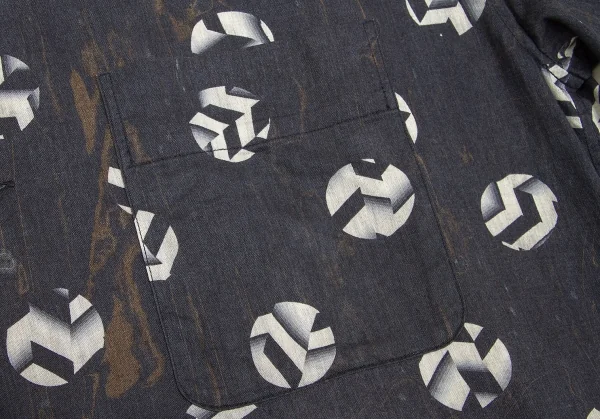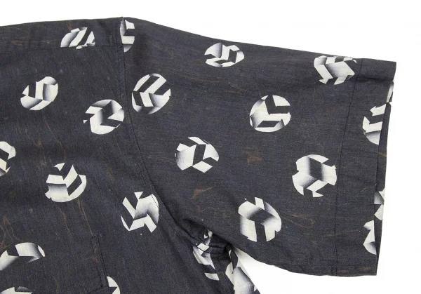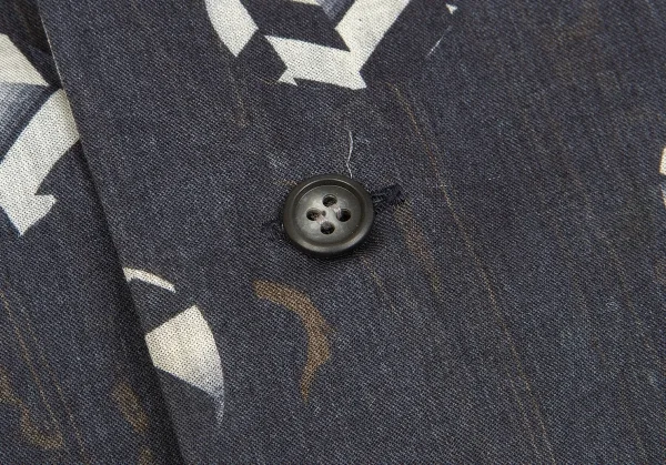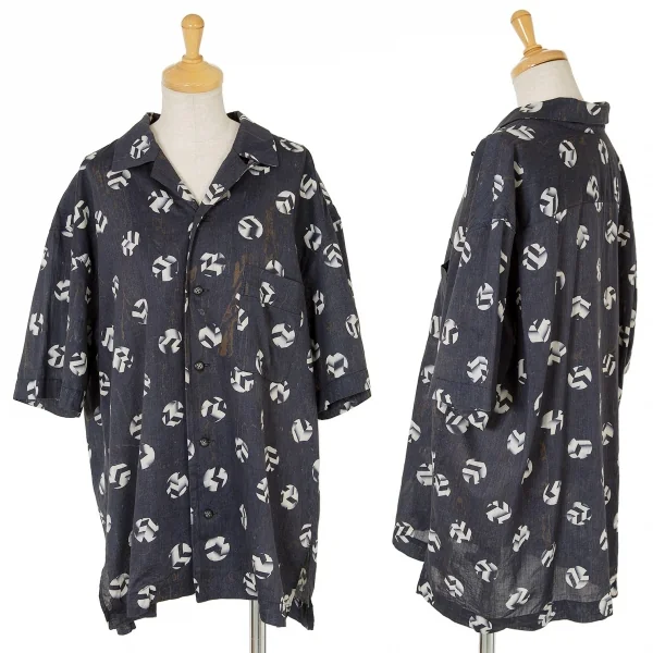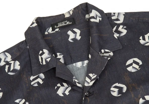 イッセイミヤケペルマネンテISSEY MIYAKE PERMANENTE 小紋柄オープンカラーシャツ 紺オフ茶M位