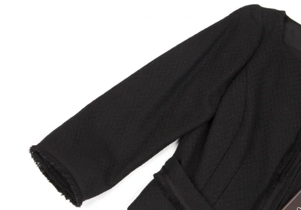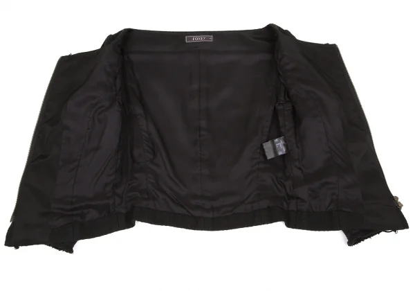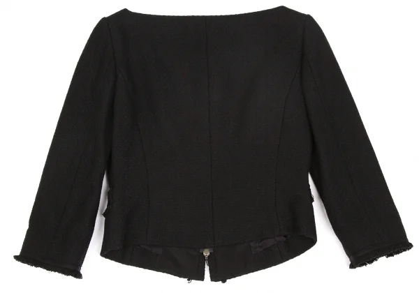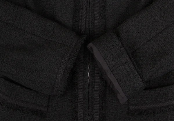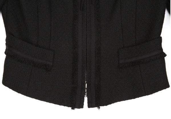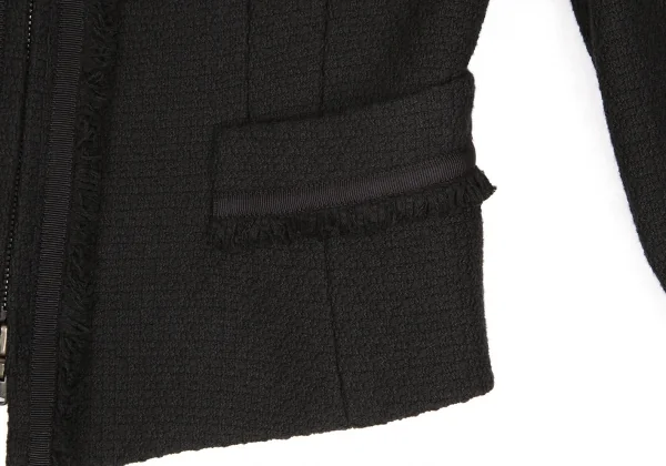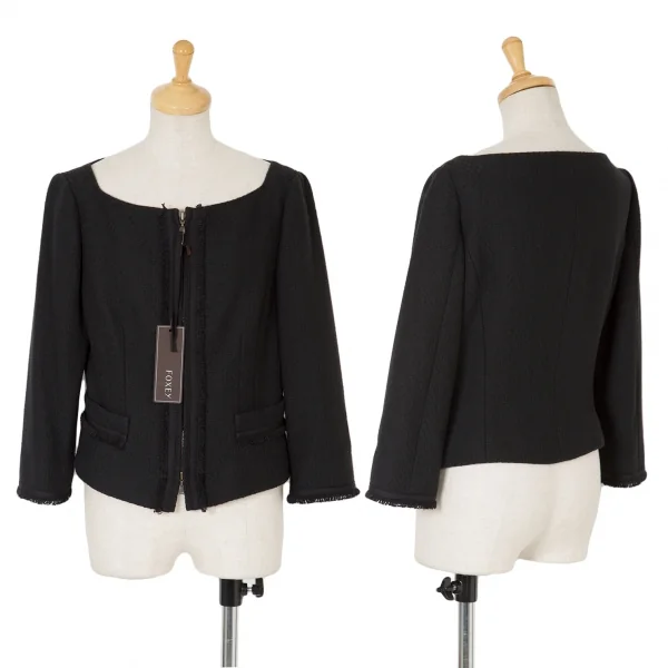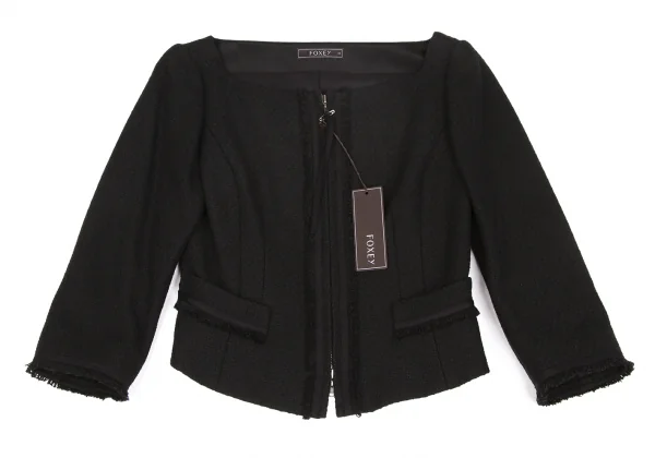 フォクシーブティック FOXEY BOUTIQUE フリンジデザインダブルジップノーカラーツイードジャケット 黒40