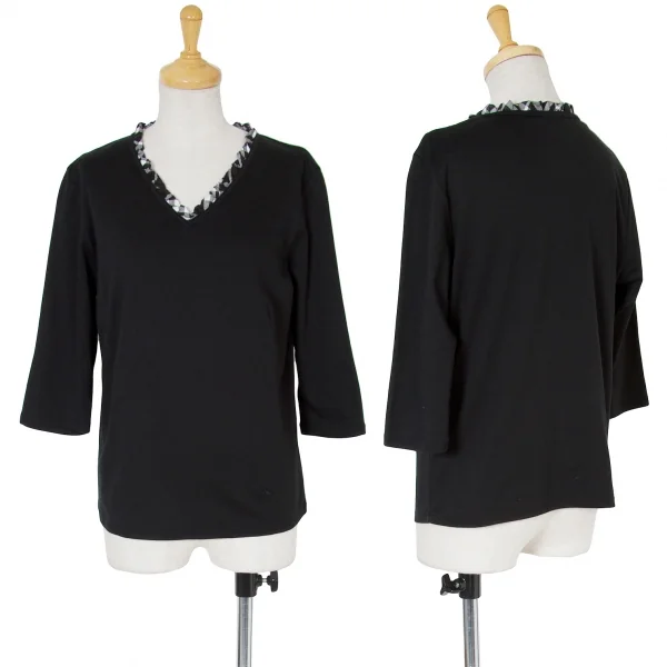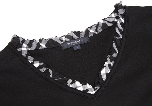 バーバリーBURBERRY LONDON チェック切替Vネックカットソー 黒白4