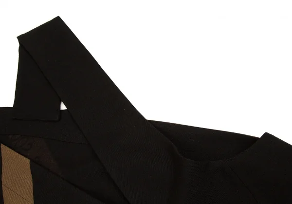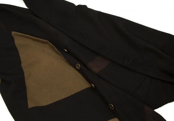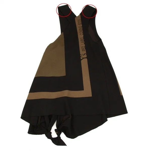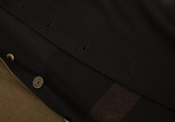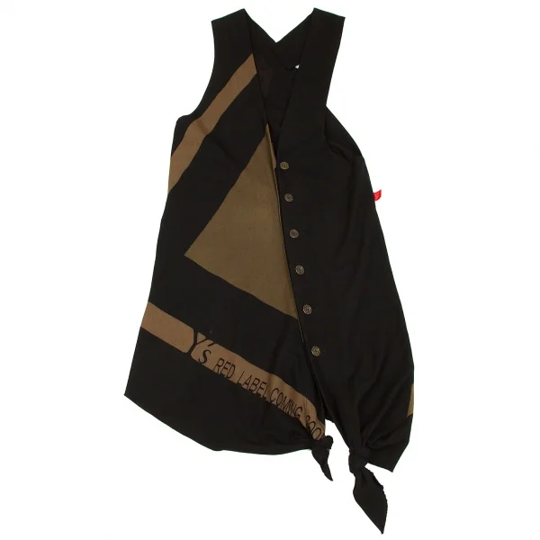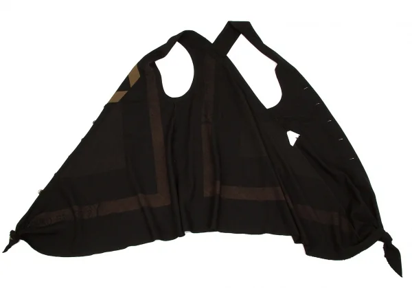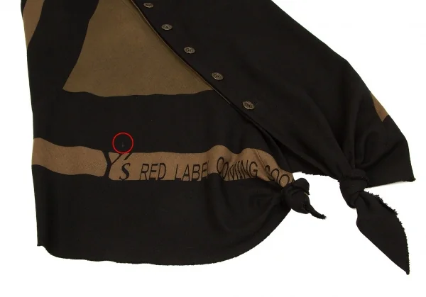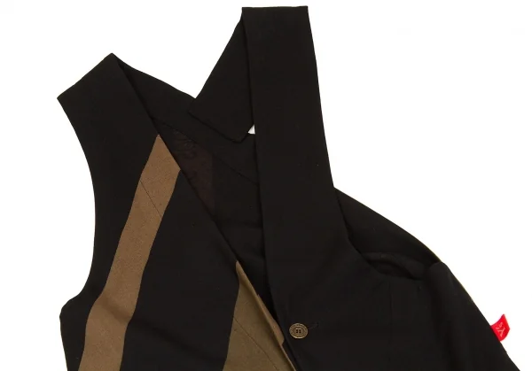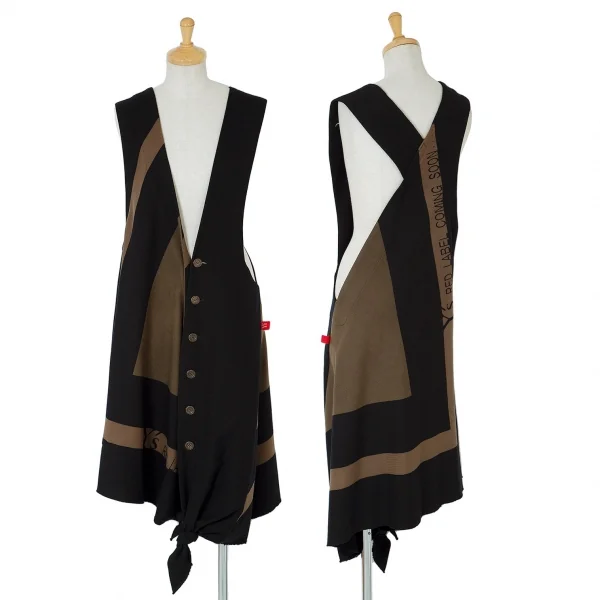 ワイズY's ウールロゴプリント裾絞りロングベスト 黒茶カーキ3