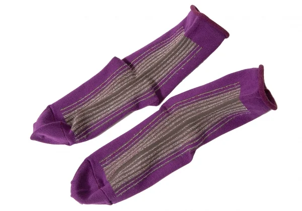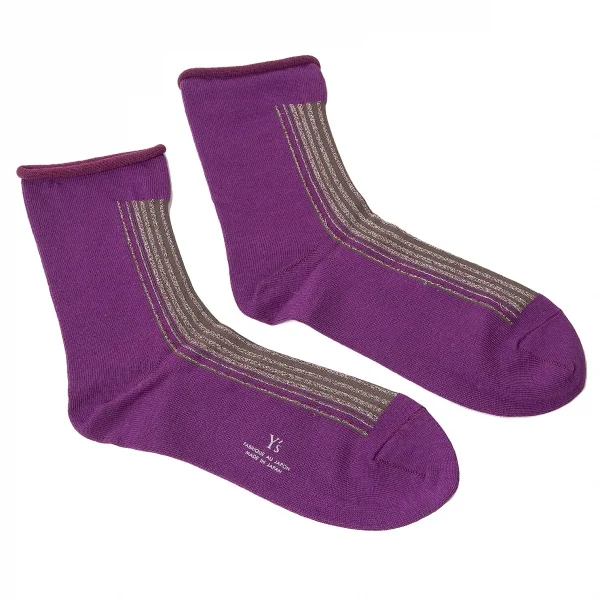 新品!ワイズY's ラメ糸ストライプソックス 紫モスグリーンシルバー他M位