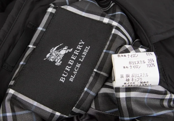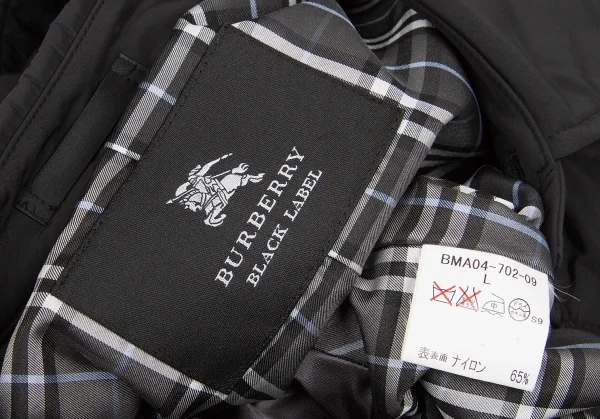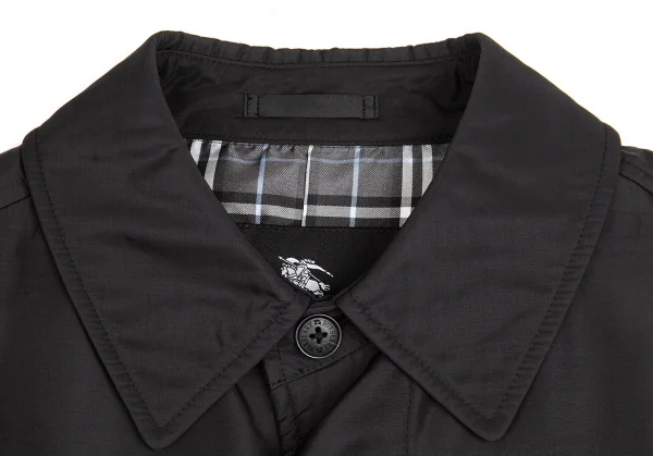 バーバリー ブラックレーベルBURBERRY BACK ABE 裏チェックナイロンステンカラーコート 黒水色白L