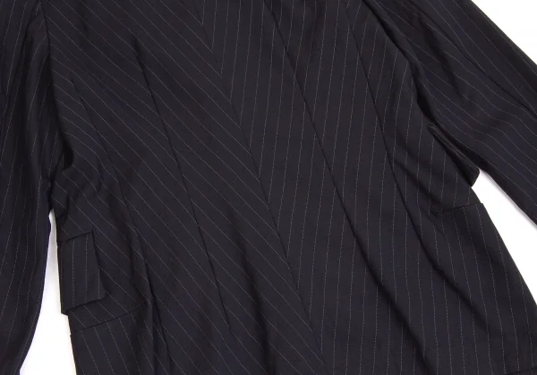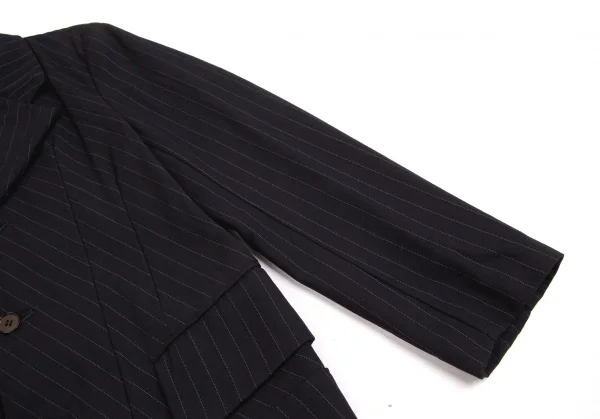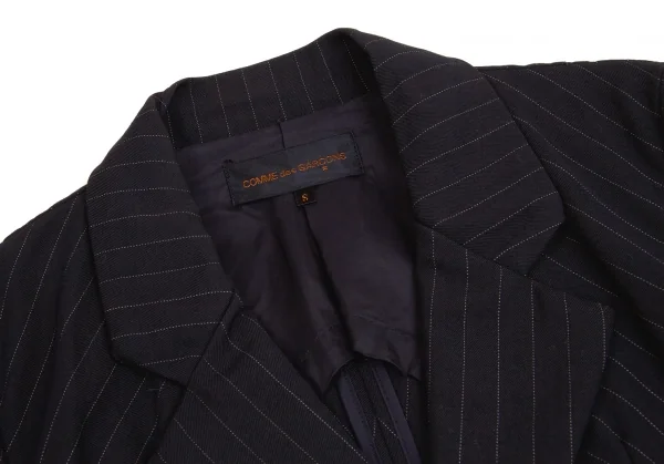 【SALE】コムデギャルソンCOMME des GARCONS 切替デザインウールストライプロングジャケット 紺S