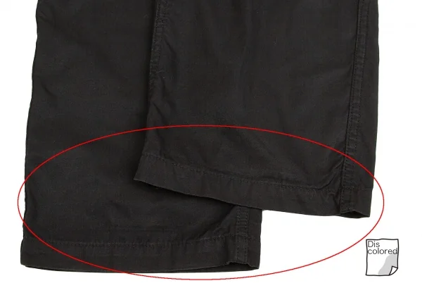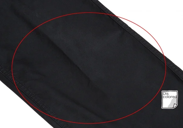 全体的に色あせ・着用感あり、前後膝付近に着用による色あせ、裾先・裾裏に色あせ、ヒップにスレがあります(画像参照)。クリーニング済み