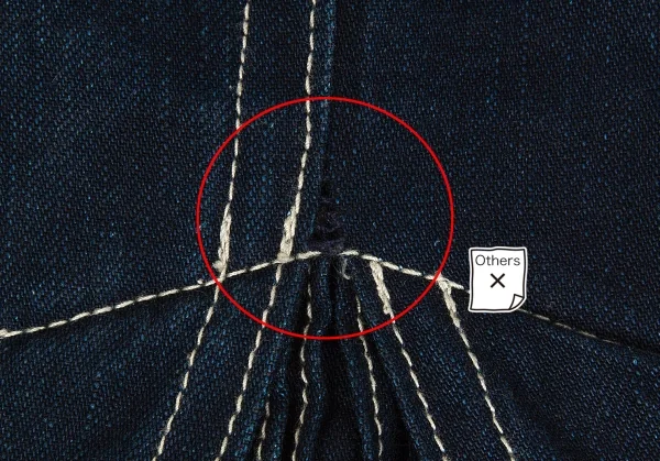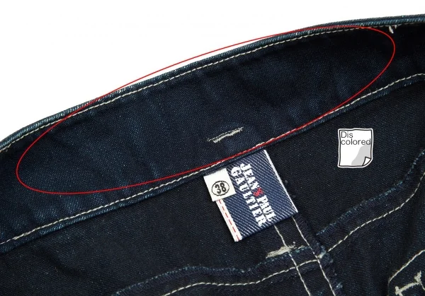 ウエスト裏に色あせ、裾裏側に汚れ、後ろ縫い目に緩みがあります(画像参照)。クリーニング済み