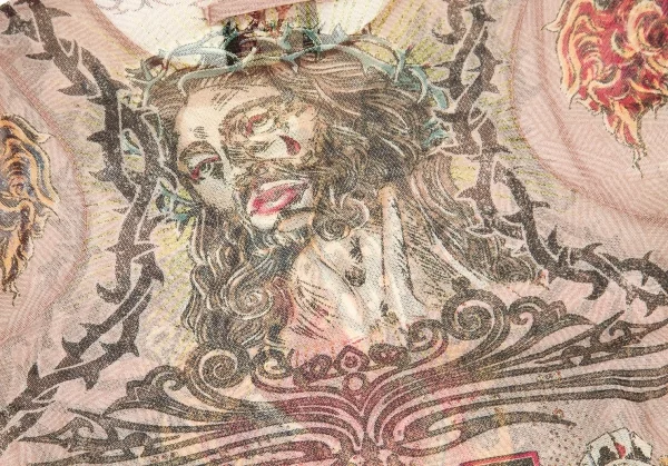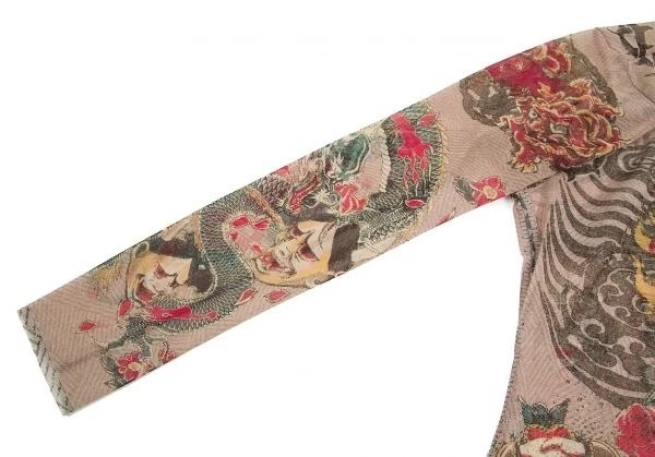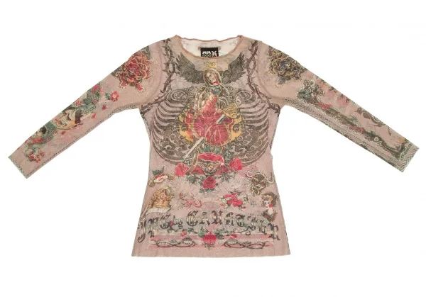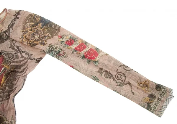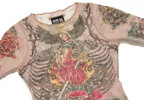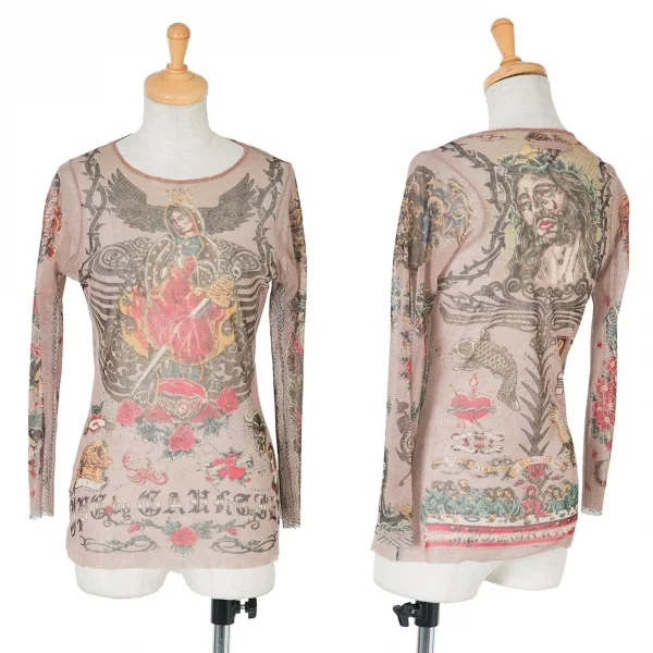 ジャンポールゴルチエJean Paul GAULTIER PARIS マリアキリストプリントパワーネットカットソー 淡モカ黒赤黄他40