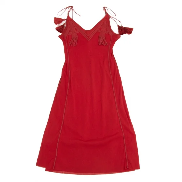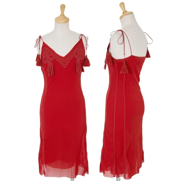 ジャンポールゴルチエ ファムJean Paul GAULTIER FEMME タッセルパイピングデザインパワーネットロングキャミソール 赤40