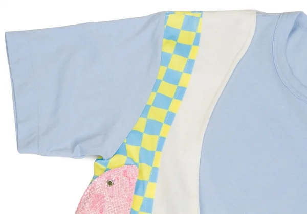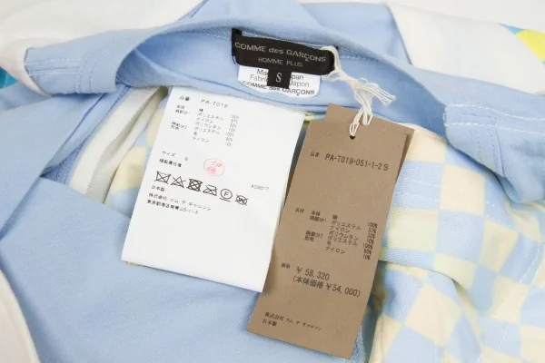 新品!【SALE】新品!コムデギャルソン オムプリュスCOMME des GARCONS HOMME PLUS カーブ切替Tシャツ 水色白ピンク他S