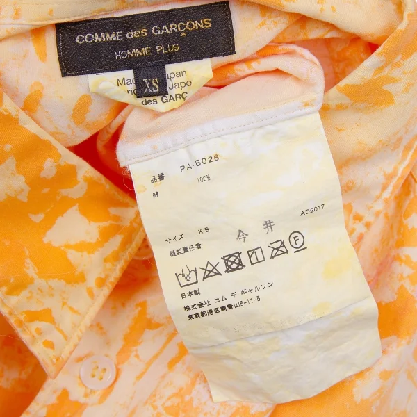 新品!コムデギャルソン オムプリュスCOMME des GARCONS HOMME PLUS タイダイコットンシャツ オレンジXS