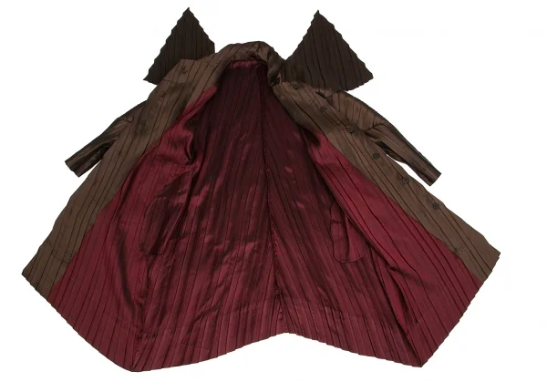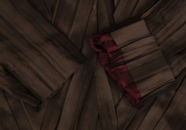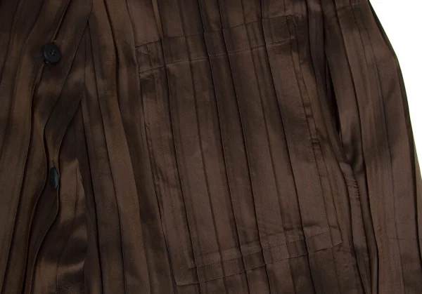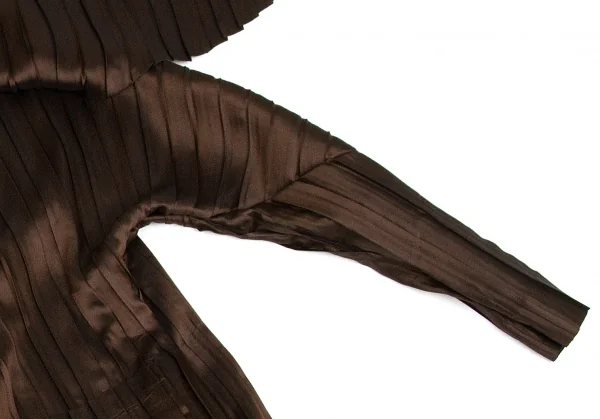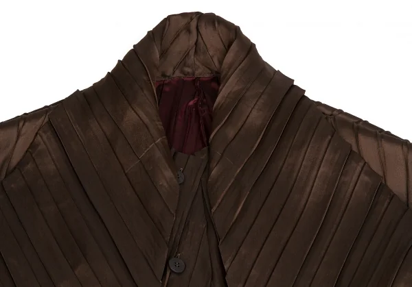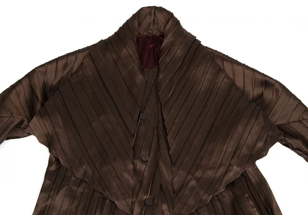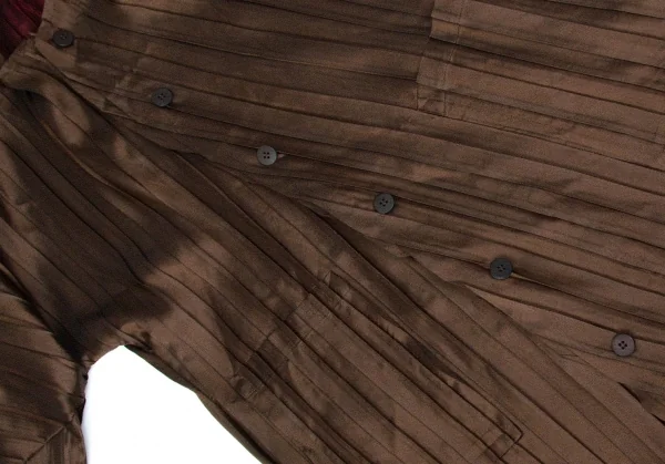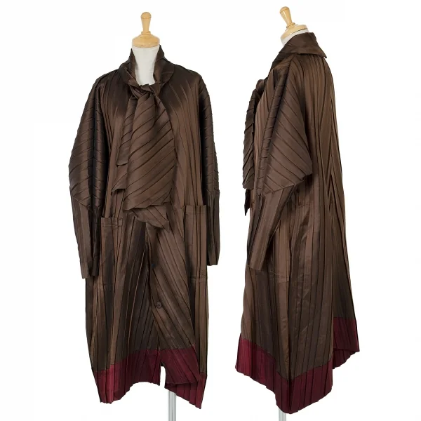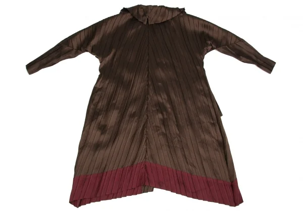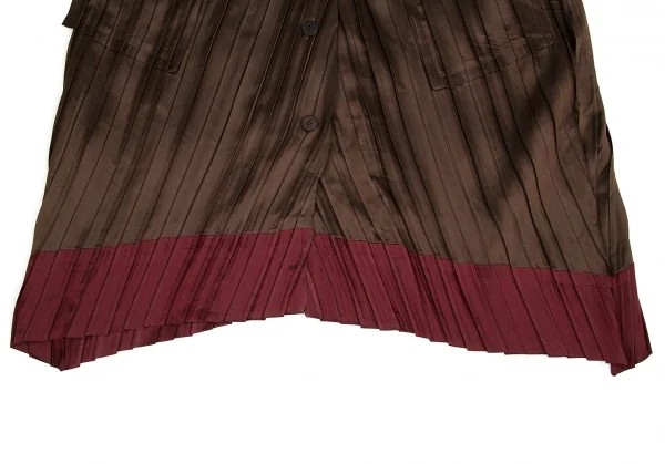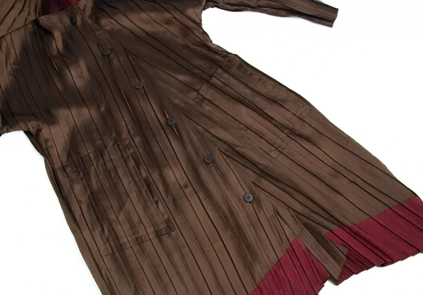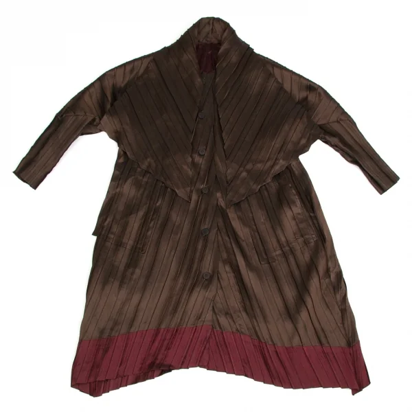 【SALE】イッセイミヤケISSEY MIYAKE バイカラープリーツボタンデザインロングジャケット 茶エンジ2