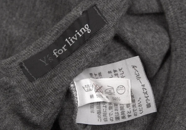 ワイズフォーリビングY's for living コットンウールフロントスリットカットソー 杢チャコールM位