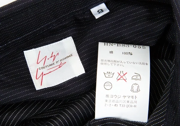 ヨウジヤマモト コスチュームドオムYohji Yamamoto COSTUME D' HOMME コットンストライプ柄ロングシャツ 紺グレー3