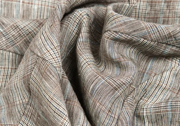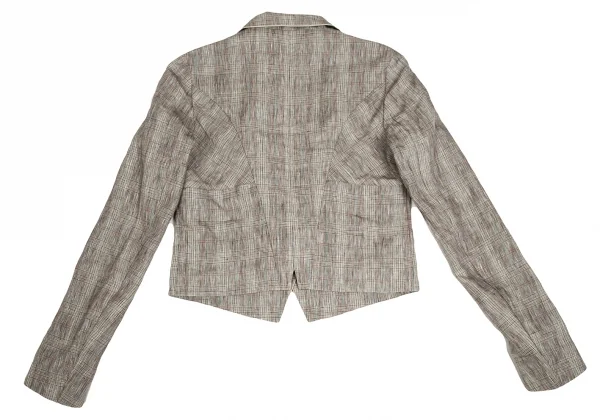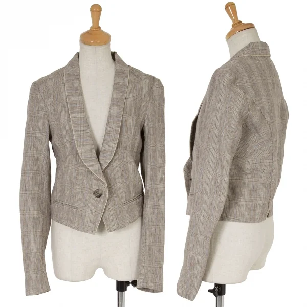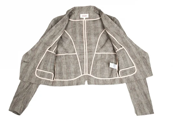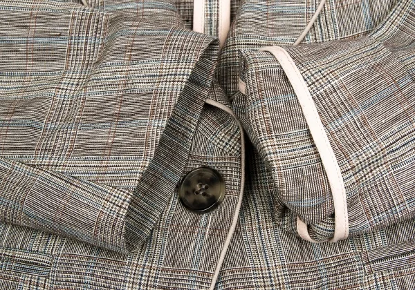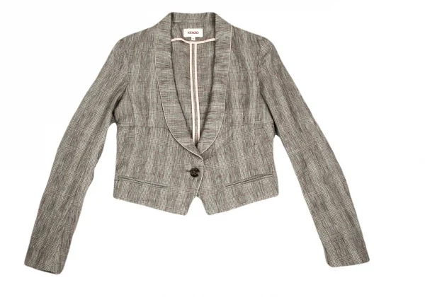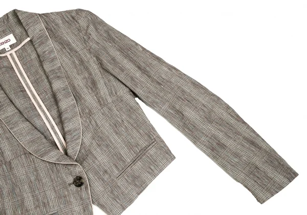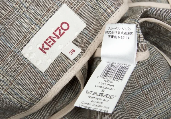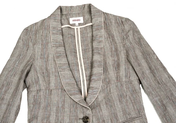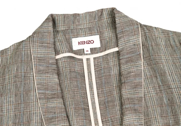 【SALE】ケンゾーKENZO リネングレンチェックショールカラーショートジャケット 茶ベージュ水色他36