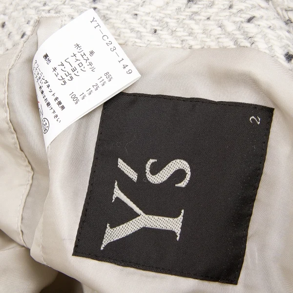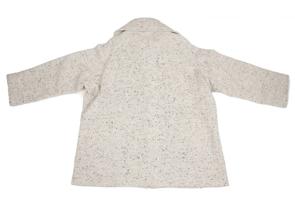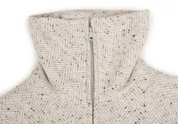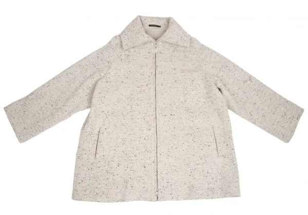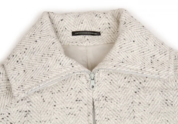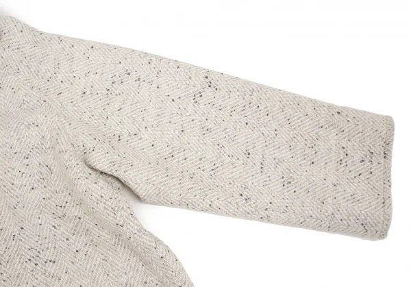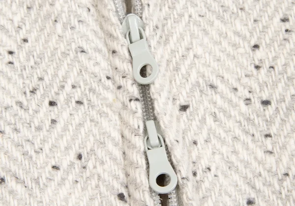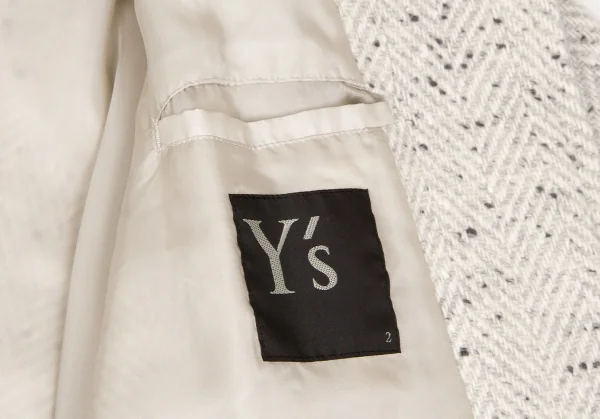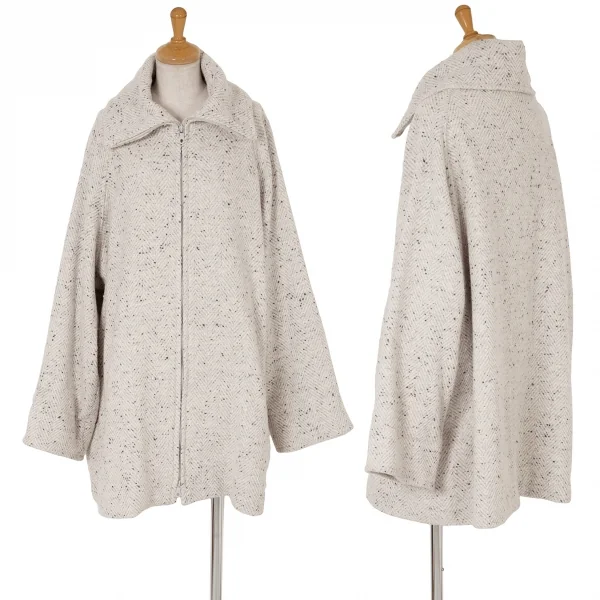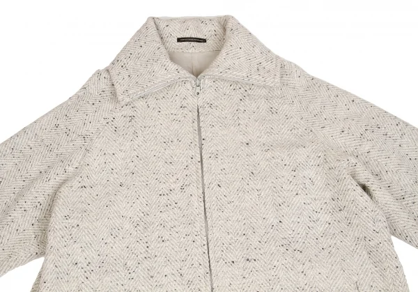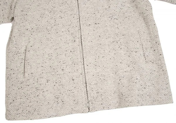 ワイズY's ウール混紡ネップヘリンボーンジップフロントコート 生成りグレー黒2