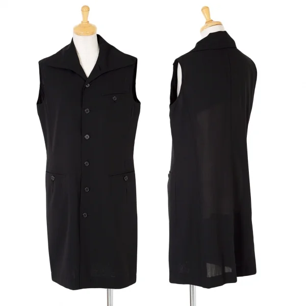 【SALE】ワイズY's ワイドカラーサマーウールノースリーブロングジャケット 黒M位