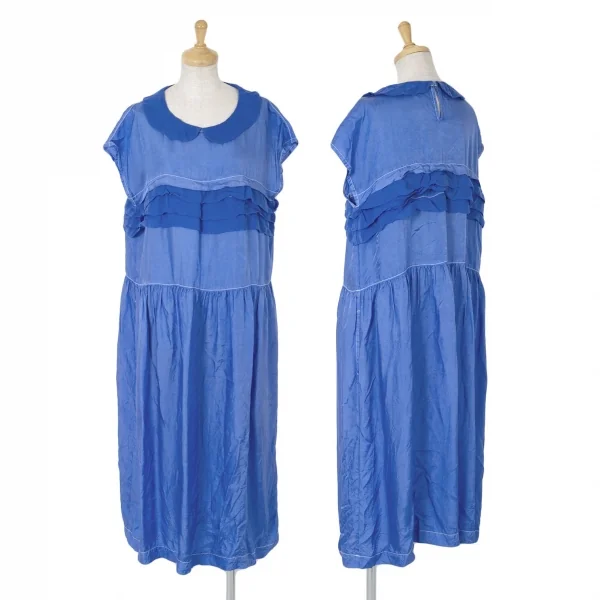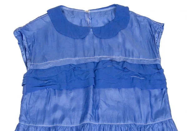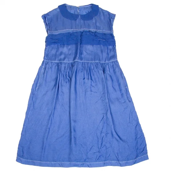 トリココムデギャルソンtricot COMME des GARCONS キュプラ製品染めラウンドカラーノースリーブワンピース ブルーM