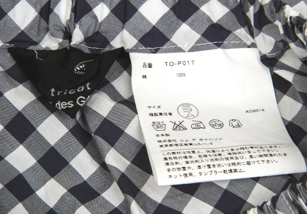 トリココムデギャルソンtricot COMME des GARCONS コットンギンガムチェック切替サルエルパンツ 紺白M位