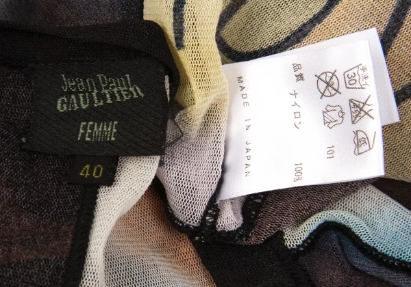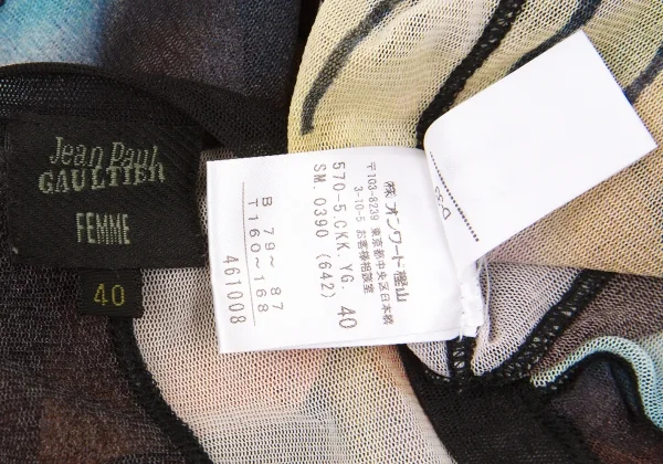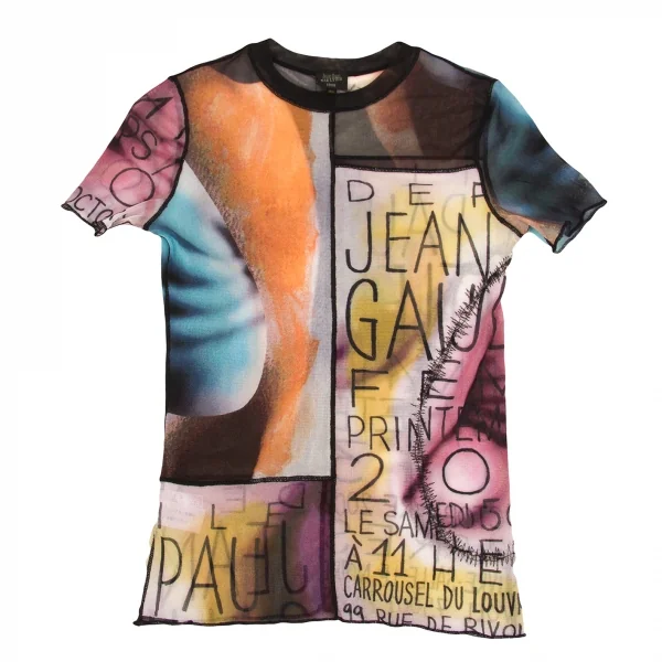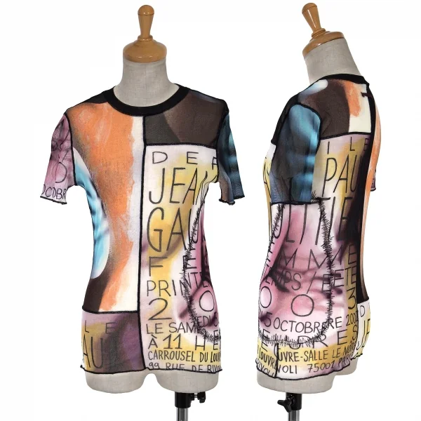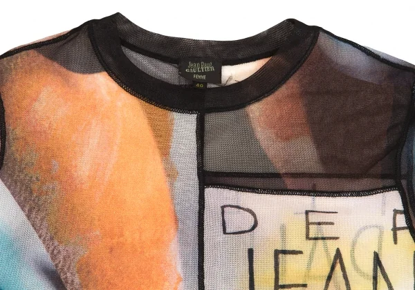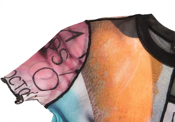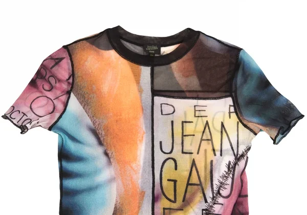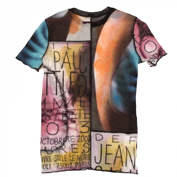 ジャンポールゴルチエ ファムJean Paul GAULTIER FEMME プリントリペアデザインパワーネットTシャツ 黒マルチ40