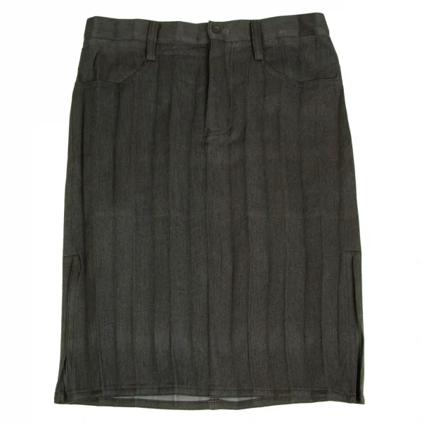 【SALE】イッセイミヤケISSEY MIYAKEサイドスリットデザインプリーツポリスカート チャコールグレーM