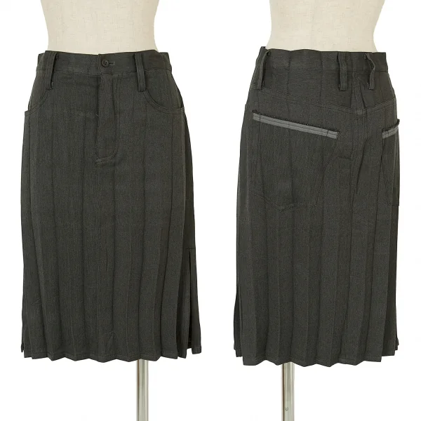 【SALE】イッセイミヤケISSEY MIYAKEプリーツポリ切替デザインセットアップ チャコールグレーM
