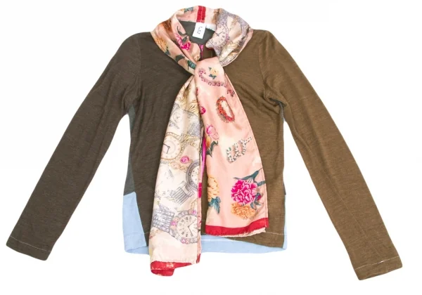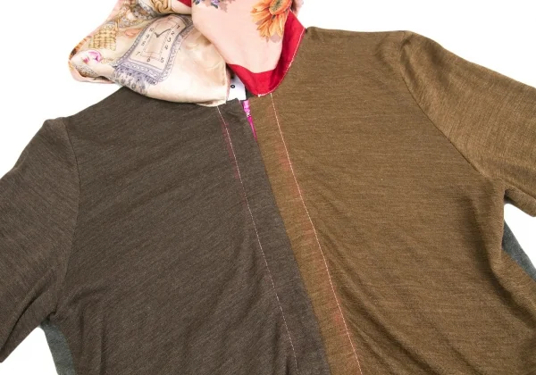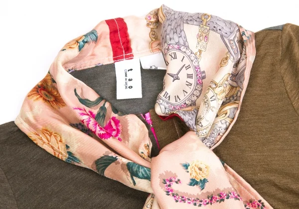タオ コムデギャルソン tao COMME des GARCONS 襟スカーフシルクウールホックカーディガン マルチM位