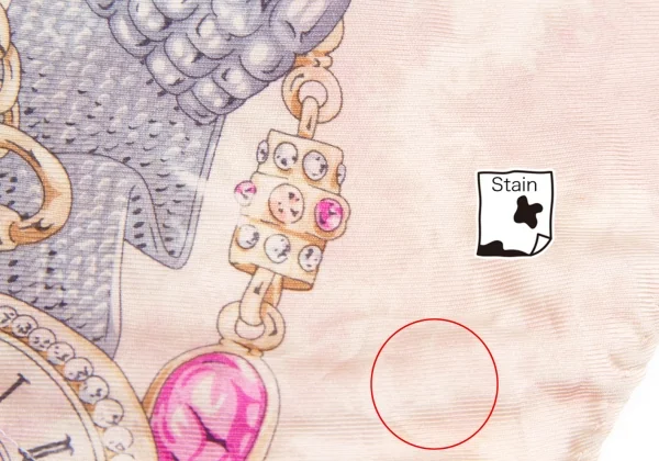 スカーフ先薄汚れ、左袖引っかきがあります(写真参照)。その他に目立ったシミ、汚れ、ほつれ等なくいい状態です。クリーニング済み