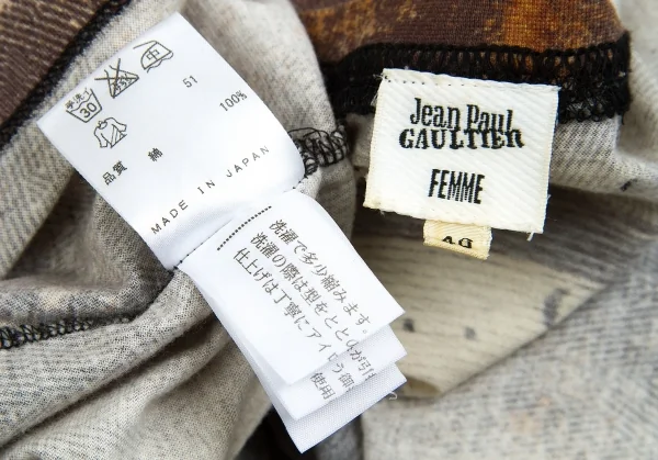 ジャンポールゴルチエ ファムJean Paul GAULTIER FEMME パンクスプリント長袖コットンカットソー ベージュ他40