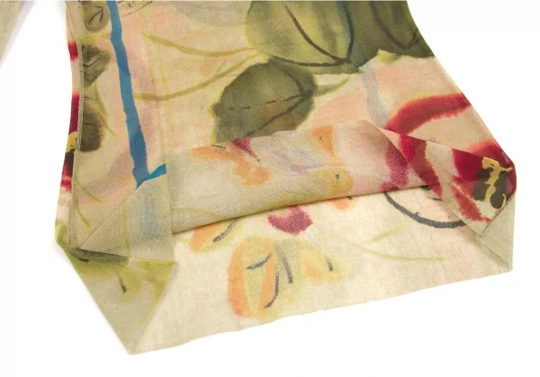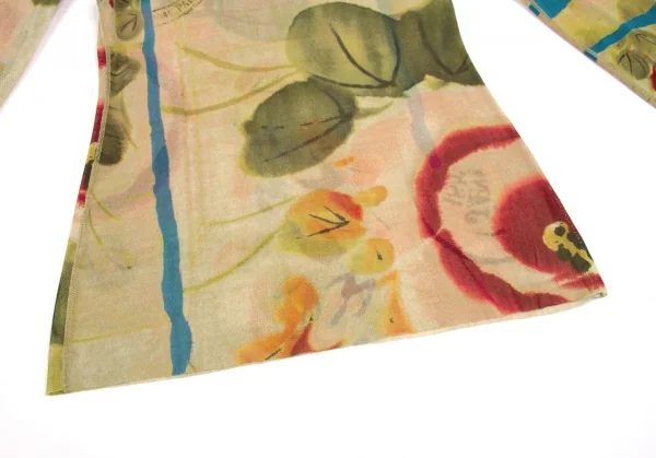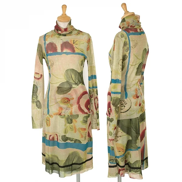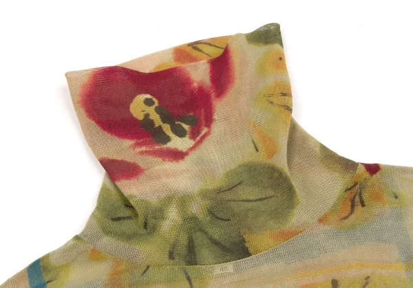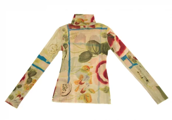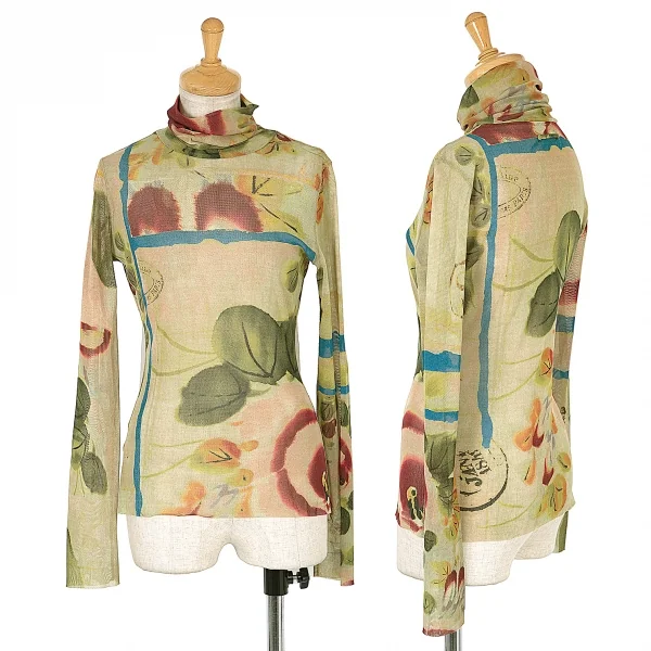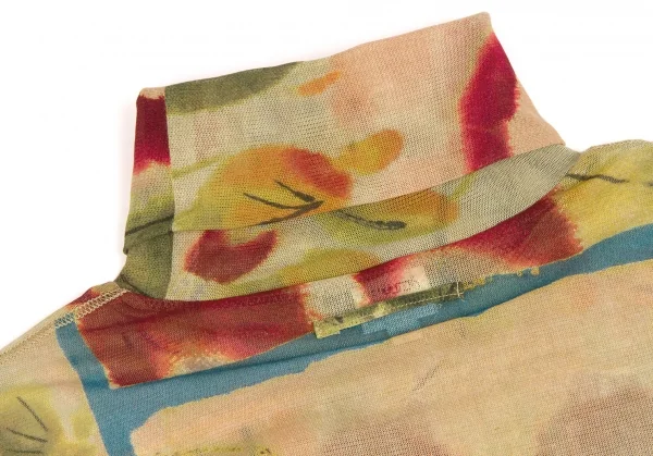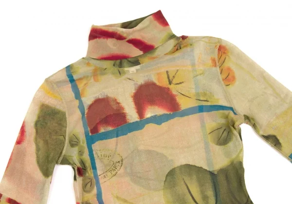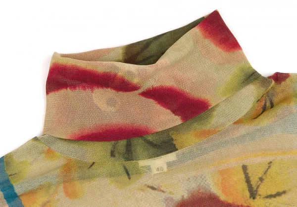 ジャンポールゴルチエ ファムJean Paul GAULTIER FEMME 水彩画プリントタートルネックパワーネットトップス 黄緑マルチ40