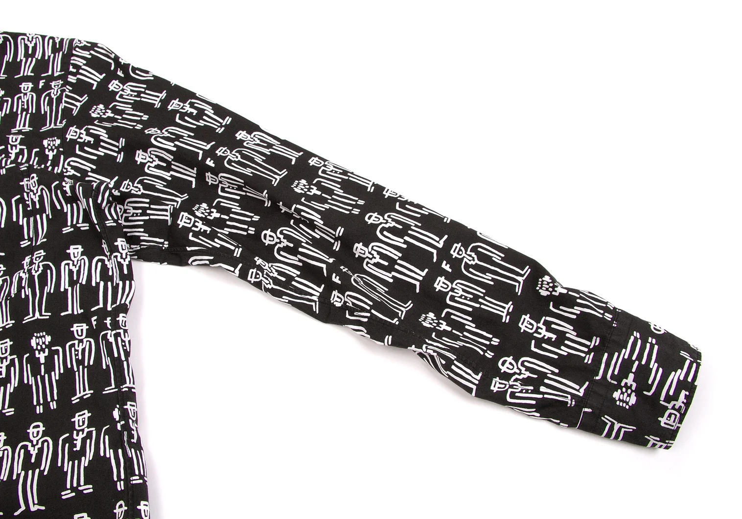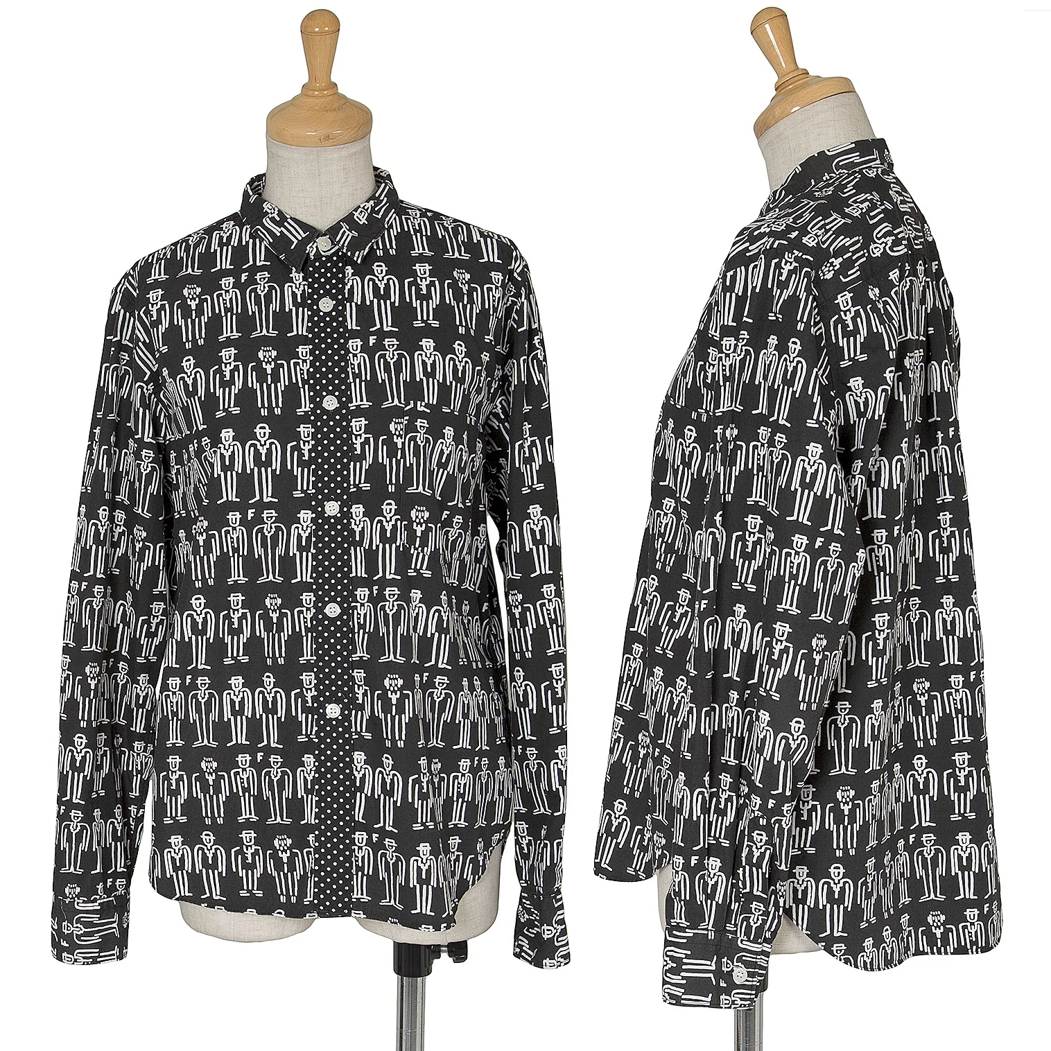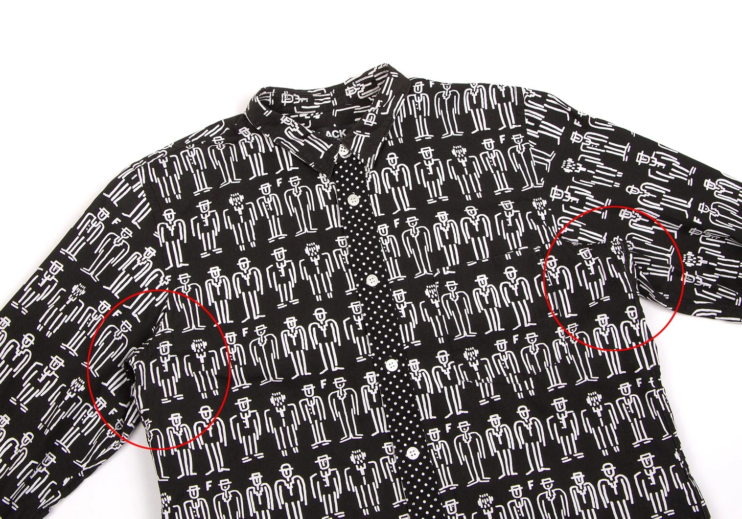 【SALE】ブラックコムデギャルソンBLACK COMME des GARCONS 人プリント長袖シャツ 黒白S