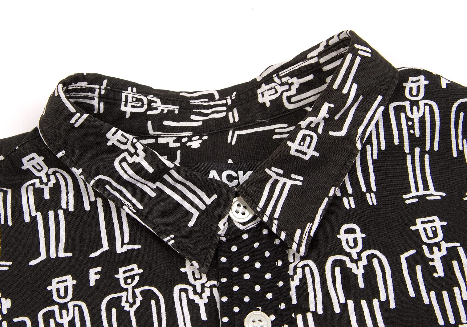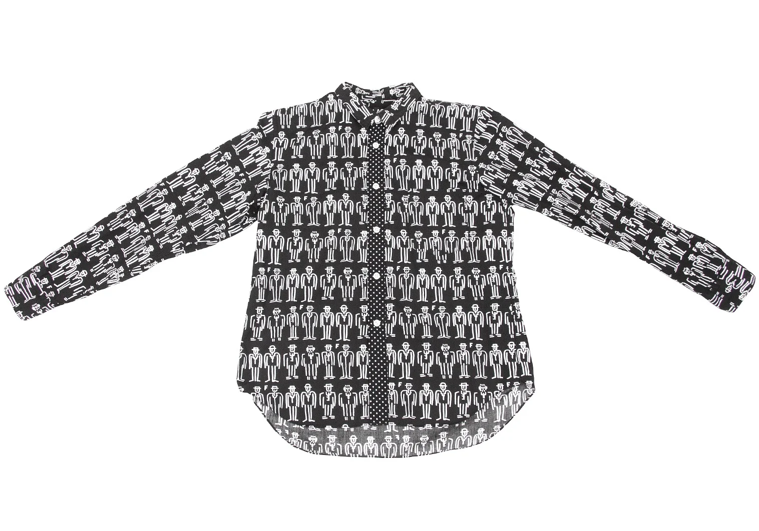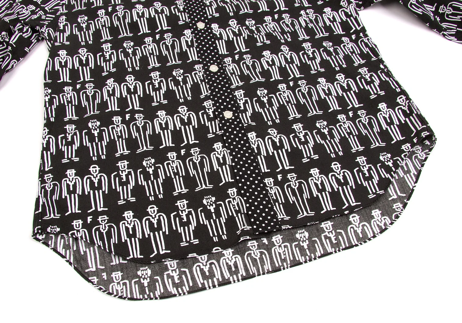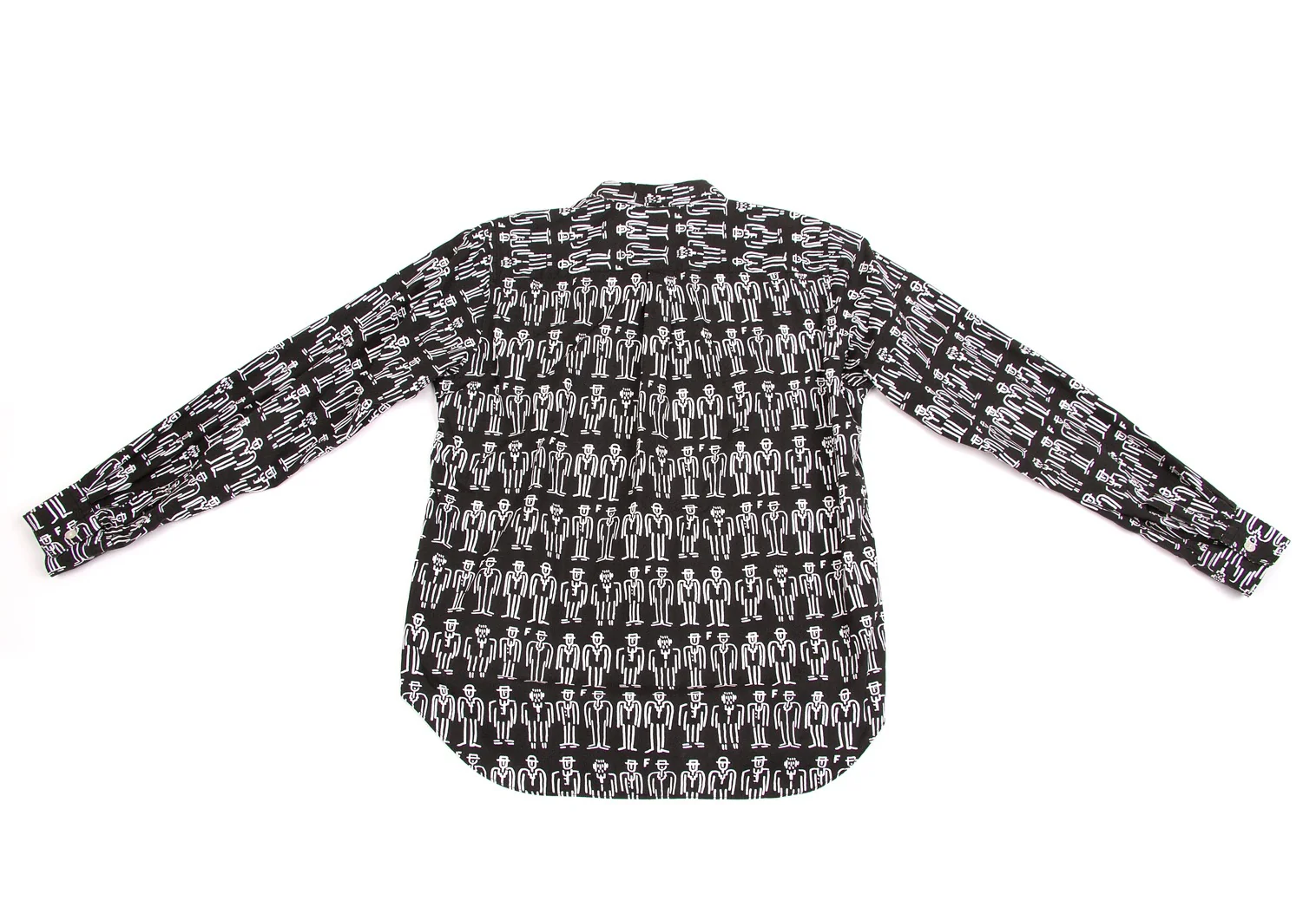 【SALE】ブラックコムデギャルソンBLACK COMME des GARCONS 人プリント長袖シャツ 黒白S
