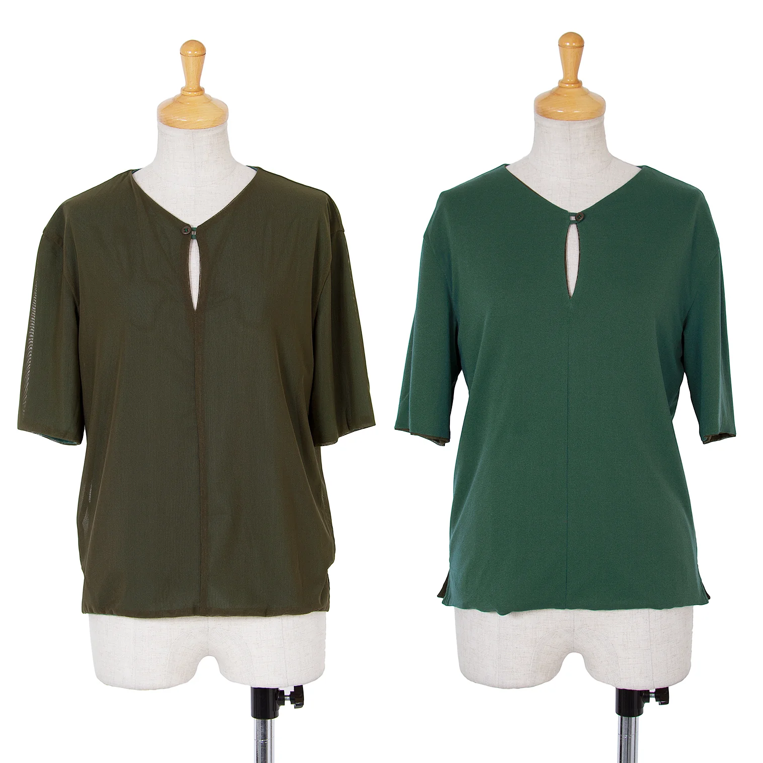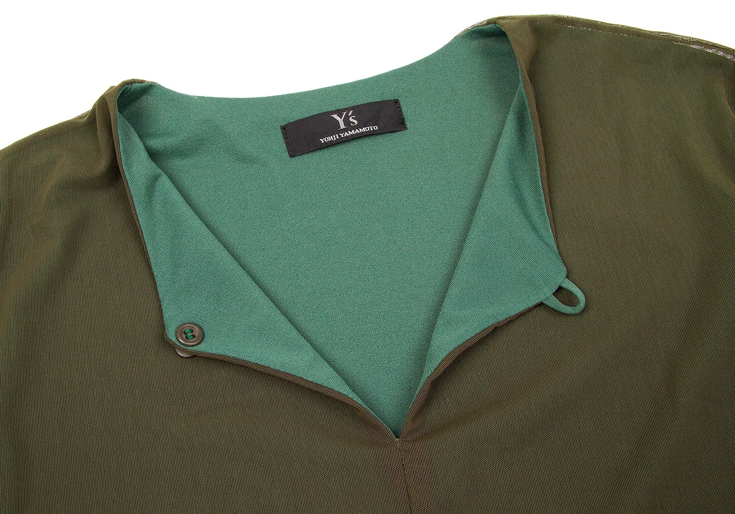 【SALE】ワイズY's リバーシブルネット半袖ボタンネックカットソー カーキ緑M位