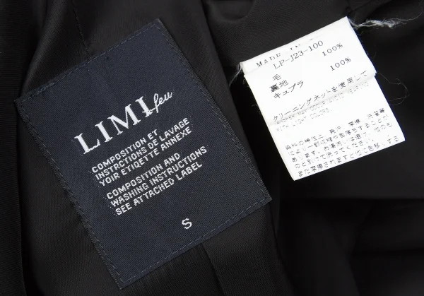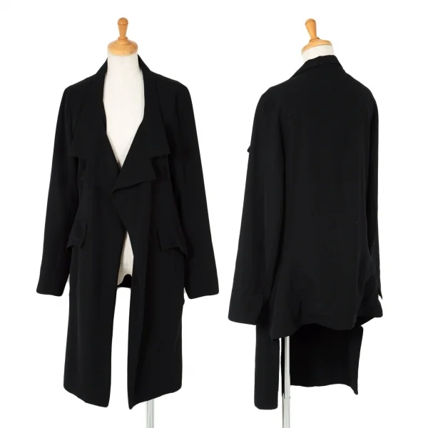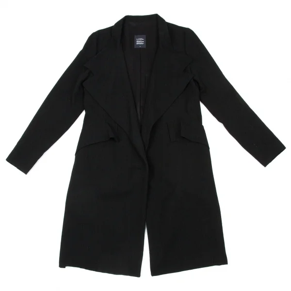 【SALE】リミフゥLIMI feu ウールギャバボタンレス変形ロングジャケット 黒S