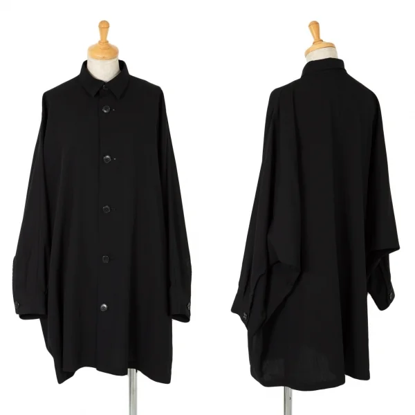 ワイズY's ドルマンスリーブウールギャバロングシャツジャケット 黒M位